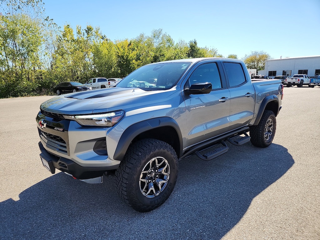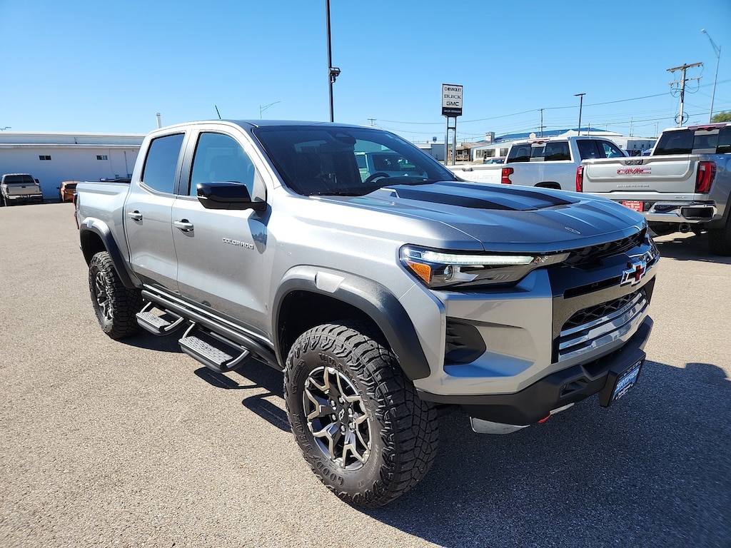 Leather, Remote Start, Bluetooth, Rear Camera, Intelink Radio, Low Miles, One Owner, Local Trade, Heated Seats, Apple CarPlay, Android Auto, Colorado ZR2, 4D Crew Cab, 2.7L Turbo, 8-Speed Automatic, 4WD, Sterling Gray Metallic, Jet Black/Artemis Cloth, 3.42 Rear Axle Ratio, 4-Way Manual Passenger Seat Adjuster, 4-Wheel Disc Brakes, 6 Speakers, 6-Speaker Audio System Feature, 8-Way Power Driver Seat Adjuster, ABS brakes, Air Conditioning, Alloy wheels, AM/FM radio: SiriusXM, Apple CarPlay/Android Auto, Auto High-beam Headlights, Auto-dimming Rear-View mirror, Automatic Emergency Braking, Automatic temperature control, Brake assist, Chevy Safety Assist, Cloth/Evotex Seat Trim, Compass, Delay-off headlights, Driver door bin, Driver vanity mirror, Dual front impact airbags, Dual front side impact airbags, Electronic Automatic Cruise Control, Electronic Stability Control, Following Distance Indicator, Forward Collision Alert, Front anti-roll bar, Front Bucket Seats, Front Center Armrest, Front dual zone A/C, Front fog lights, Front License Plate Kit, Front Pedestrian & Bicyclist Braking, Front reading lights, Front wheel independent suspension, Heated door mirrors, Heated Driver & Front Passenger Seats, Heated front seats, Illuminated entry, IntelliBeam Automatic High Beam On/Off, Lane Keep Assist w/Lane Departure Warning, Low tire pressure warning, Navigation System, Occupant sensing airbag, Outside temperature display, Overhead airbag, Overhead console, Panic alarm, Passenger door bin, Passenger Seatback Map Pocket, Passenger vanity mirror, Power door mirrors, Power Driver Lumbar Control Seat Adjuster, Power driver seat, Power Sliding Glass w/Manual Shade Sunroof, Power steering, Power windows, Preferred Equipment Group 4ZR, Radio data system, Radio: 11.3 Diagonal Advanced Color LCD Display, Rear reading lights, Rear step bumper, Rear window defroster, Rear-Window Electric Defogger, Remote keyless entry, Security system, SiriusXM Radio, Speed control, Speed-sensing steering, Split folding rear seat, Steering Wheel Mounted Audio Controls, Steering wheel mounted audio controls, Tachometer, Telescoping steering wheel, Tilt steering wheel, Traction control, Trip computer, Variably intermittent wipers, Wheels: 17 x 8 Graphite & Oxide Gold Aluminum, Wireless Phone Projection, ZR2 Off-Road Package, Colorado ZR2, 4D Crew Cab, 2.7L Turbo, 8-Speed Automatic, 4WD, Sterling Gray Metallic, Jet Black/Artemis Cloth. New Price! Sterling Gray Metallic 2023 Chevrolet Colorado ZR2 2.7L Turbo 8-Speed Automatic 4WD 4D Crew Cab
