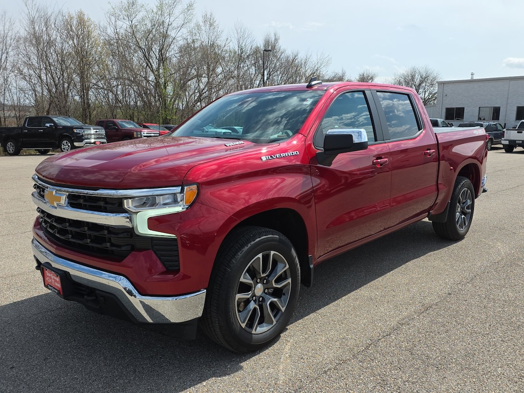 Remote Start, Bluetooth, Rear Camera, My Link Radio, Local Trade, Heated Seats, Apple CarPlay, Android Auto, Silverado 1500 LT LT1, GM Certified, 4D Crew Cab, 3.0L I6, 10-Speed Automatic, 4WD, Radiant Red Tintcoat, Black Cloth, 10-Way Power Driver Seat w/Lumbar, 12.3 Multicolor Reconfigurable Digital Display, 120-Volt Bed Mounted Power Outlet, 120-Volt Instrument Panel Power Outlet, 220 Amp Alternator, 3.23 Rear Axle Ratio, 4-Wheel Disc Brakes, 40/20/40 Front Split-Bench Seat, 6 Speakers, 6-Speaker Audio System, ABS brakes, Air Conditioning, All-Star Edition, Alloy wheels, AM/FM radio: SiriusXM with 360L, Apple CarPlay/Android Auto, Auto High-beam Headlights, Auto-Locking Rear Differential, Automatic Emergency Braking, Automatic temperature control, Bluetooth® For Phone, Brake assist, Bumpers: chrome, Chevrolet Connected Access Capable, Chrome Mirror Caps, Cloth Seat Trim, Color-Keyed Carpeting Floor Covering, Compass, Convenience Package, Deep-Tinted Glass, Delay-off headlights, Driver door bin, Driver vanity mirror, Dual front impact airbags, Dual front side impact airbags, Dual Rear USB Ports (Charge Only), Dual-Zone Automatic Climate Control, Electric Rear-Window Defogger, Electrical Steering Column Lock, Electronic Cruise Control, Electronic Stability Control, Engine Block Heater, EZ Lift Power Lock & Release Tailgate, Following Distance Indicator, Forward Collision Alert, Front anti-roll bar, Front Center Armrest w/Storage, Front dual zone A/C, Front Frame-Mounted Black Recovery Hooks, Front License Plate Kit, Front Pedestrian Braking, Front reading lights, Front Rubberized Vinyl Floor Mats, Front wheel independent suspension, Fully automatic headlights, HD Rear Vision Camera, Heated door mirrors, Heated Driver & Front Outboard Passenger Seats, Heated front seats, Heated Power-Adjustable Outside Mirrors, Heated Steering Wheel, Heated steering wheel, High Capacity Suspension Package, Hitch Guidance, Illuminated entry, Inside Rear-View Mirror w/Tilt, IntelliBeam Automatic High Beam On/Off, Keyless Open & Start, Lane Keep Assist w/Lane Departure Warning, LED Cargo Area Lighting, Low tire pressure warning, Not Equipped w/Steering Column Lock, Occupant sensing airbag, OnStar & Chevrolet Connected Services Capable, Outside temperature display, Overhead airbag, Overhead console, Panic alarm, Passenger door bin, Passenger vanity mirror, Power door mirrors, Power driver seat, Power Front Windows w/Driver Express Up/Down, Power Front Windows w/Passenger Express Down, Power Rear Windows w/Express Down, Power steering, Power windows, Preferred Equipment Group 1LT, Premium audio system: Chevrolet Infotainment 3 Premium, Radio data system, Radio: Chevrolet Infotainment 3 Premium System, Rear 60/40 Folding Bench Seat (Folds Up), Rear reading lights, Rear Rubberized-Vinyl Floor Mats, Rear step bumper, Rear window defroster, Remote keyless entry, Remote Start Package, Remote Vehicle Starter System, Security system, SiriusXM w/360L, Speed control, Speed-sensing steering, Split folding rear seat, Standard Suspension Package, Standard Tailgate, Steering Wheel Audio Controls, Steering wheel mounted audio controls, Tachometer, Telescoping steering wheel, Theft Deterrent System (Unauthorized Entry), Tilt steering wheel, Traction control, Trailering Package, Trip computer, Variably intermittent wipers, Voltmeter, Wheels: 17 x 8 Bright Silver Painted Aluminum, Wheels: 20 x 9 Painted Aluminum, Wi-Fi Hot Spot Capable, Wireless Phone Projection, Wrapped Steering Wheel, Silverado 1500 LT LT1, 4D Crew Cab, 3.0L I6, 10-Speed Automatic, 4WD, Radiant Red Tintcoat, Black Cloth. New Price! Certified. Radiant Red Tintcoat 2023 Chevrolet Silverado 1500 LT LT1 3.0L I6 10-Speed Automatic 4WD 4D Crew Cab22/27 City/Highway MPGGM Details:* Roadside Assistance* Vehicle History* 24 months/24,000 miles (whichever comes first) Certified Pre-Owned Scheduled Maintenance Plan and 3 days/150 miles (whichever comes first) Vehic