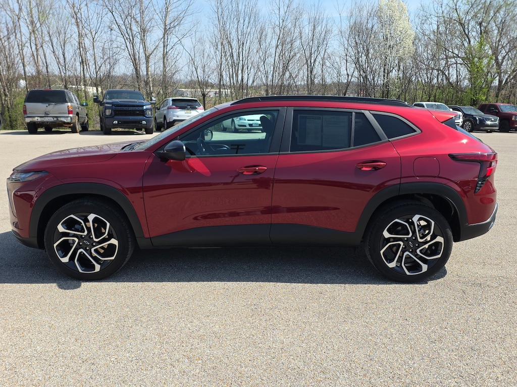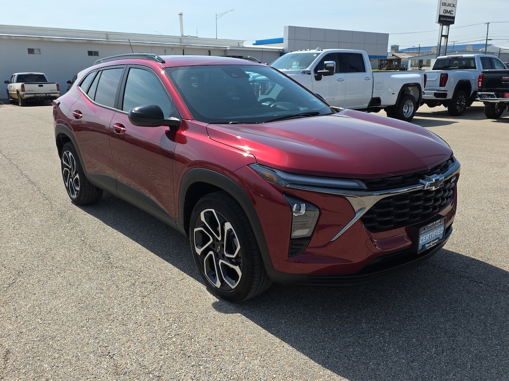 Leather, Remote Start, Bluetooth, Rear Camera, My Link Radio, One Owner, Local Trade, Trax 2RS, GM Certified, 4D Sport Utility, 1.2L I3 DI Turbocharged DOHC 12V LEV3-ULEV70 137hp, 6-Speed Automatic, FWD, Crimson Metallic, Jet Black With Red Accents Leatherette, 2-Way Adjustable Front Head Restraints, 2-Way Power Driver Lumbar Seat Adjuster, 3.50 Final Drive Axle Ratio, 4-Way Manual Front Passenger Seat Adjuster, 4-Wheel Disc Brakes, 6 Speakers, 6-Speaker Audio System Feature, 6-Way Manual Driver Seat Adjuster, 8-Way Power Driver Seat Adjuster, ABS brakes, Adaptive Cruise Control, Air Conditioning, Alloy wheels, AM/FM radio: SiriusXM, Auto High-beam Headlights, Automatic temperature control, Brake assist, Bumpers: body-color, Compass, Delay-off headlights, Driver Confidence Package, Driver door bin, Driver vanity mirror, Dual front impact airbags, Dual front side impact airbags, Electronic Stability Control, Emergency communication system: OnStar One Essentials, Evotex Seat Trim, Exterior Parking Camera Rear, Front anti-roll bar, Front Bucket Seats, Front Center Armrest, Front reading lights, Front wheel independent suspension, Fully automatic headlights, Heated door mirrors, Heated Driver and Front Passenger Seats, Heated front seats, Heated steering wheel, Illuminated entry, Lane Change Alert with Side Blind Zone Alert, Leather steering wheel, License Plate Front Mounting Package, Low tire pressure warning, Occupant sensing airbag, Outside temperature display, Overhead airbag, Overhead console, Panic alarm, Passenger door bin, Passenger vanity mirror, Power door mirrors, Power Sliding Glass Sunroof with Manual Shade, Power steering, Power windows, Preferred Equipment Group 2RS, Premium audio system: Chevrolet Infotainment 3, Radio data system, Radio: AM/FM Stereo Audio System, Rear Cross-Traffic Alert, Rear Park Assist, Rear window defroster, Rear window wiper, Remote keyless entry, Security system, SiriusXM Trial Subscription, Speed control, Split folding rear seat, Spoiler, Sport steering wheel, Steering wheel mounted audio controls, Sunroof Package, Tachometer, Telescoping steering wheel, Tilt steering wheel, Traction control, Trip computer, Variably intermittent wipers, Wheels: 19 Black-Painted Machined Aluminum, Wireless Charging, Trax 2RS, 4D Sport Utility, 1.2L I3 DI Turbocharged DOHC 12V LEV3-ULEV70 137hp, 6-Speed Automatic, FWD, Crimson Metallic, Jet Black With Red Accents Leatherette. Certified. Crimson Metallic 2025 Chevrolet Trax 2RS 1.2L I3 DI Turbocharged DOHC 12V LEV3-ULEV70 137hp 6-Speed Automatic FWD 4D Sport Utility