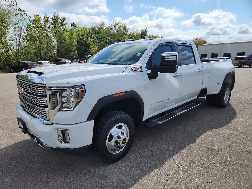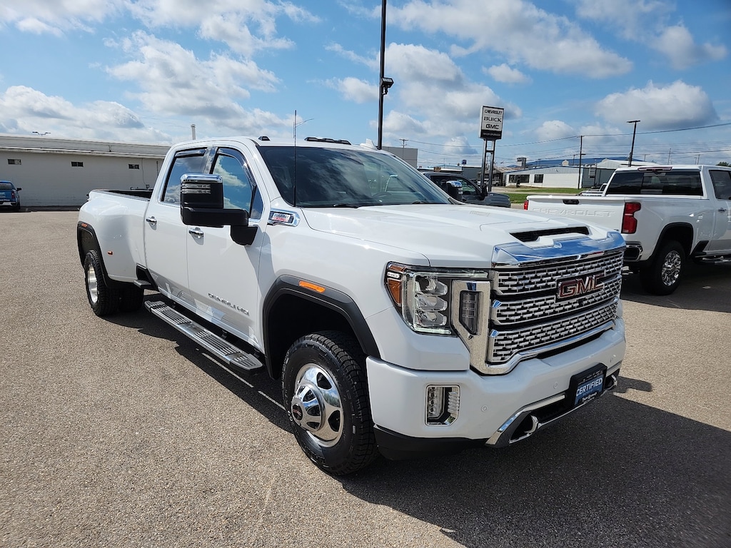 Leather, Remote Start, Bluetooth, Rear Camera, Intelink Radio, Low Miles, One Owner, Local Trade, Heated Seats, Cooled Seats, Apple CarPlay, Android Auto, Sierra 3500HD Denali DRW, 4D Crew Cab, Duramax 6.6L V8 Turbodiesel, 10-Speed Automatic, 4WD, Summit White, Dark Walnut/Dark Ash Grey Leather, 10-Way Power Driver Seat Adjuster w/Lumbar, 10-Way Power Passenger Seat Adjuster w/Lumbar, 12-Volt Rear Auxiliary Power Outlet, 120-Volt Bed Mounted Power Outlet, 120-Volt Instrument Panel Power Outlet, 2 USB Ports (First Row), 2 USB Ports Inside Console, 2-Speed Active Transfer Case, 220 Amp Alternator, 2nd Row Dual USB Charge-Only Ports, 4-Wheel Disc Brakes, 6 Rectangular Chromed Tubular Assist Steps, 7 Speakers, ABS brakes, Air Conditioning, Alloy wheels, AM/FM radio: SiriusXM with 360L, Apple CarPlay/Android Auto, Auto High-beam Headlights, Auto-dimming door mirrors, Auto-dimming Rear-View mirror, Automatic Emergency Braking, Automatic temperature control, Bed View Camera w/2 Trailer Camera Provisions, Bose Premium 7 Speaker Sound System, Brake assist, Bumpers: body-color, Compass, Compass Located In Instrument Cluster, Deep-Tinted Glass, Delay-off headlights, Driver Alert Package I, Driver Alert Package II, Driver door bin, Driver Memory, Driver vanity mirror, Dual front impact airbags, Dual front side impact airbags, Electric Rear-Window Defogger, Electrical Lock Control Steering Column, Electronic Stability Control, Engine Block Heater, Exhaust Brake, Exterior Parking Camera Rear, Floor-Mounted Center Console, Following Distance Indicator, Forge Perforated Leather-Appointed Seat Trim, Forward Collision Alert, Front anti-roll bar, Front Bucket Seats, Front Center Armrest, Front Chrome Recovery Hooks, Front dual zone A/C, Front fog lights, Front License Plate Kit, Front reading lights, Front wheel independent suspension, Fully automatic headlights, Garage door transmitter, Genuine wood console insert, Genuine wood door panel insert, GMC Connected Access Capable, HD Rear Vision Camera, HD Surround Vision w/2 Trailer View Camera Provisions, Heated door mirrors, Heated Driver & Front Outboard Passenger Seats, Heated front seats, Heated steering wheel, Heavy-Duty 80 Amp Battery, Hitch Guidance w/Hitch View, Illuminated entry, In-Vehicle Trailering System App, Integrated Trailer Brake Controller, IntelliBeam Automatic High Beam On/Off, Keyless Open & Start, Lane Change Alert w/Side Blind Zone Alert, Lane Departure Warning System, LED Cargo Area Lighting, Low tire pressure warning, Manual Tilt-Wheel/Telescoping Steering Column, Memory seat, Navigation System, Not Equipped w/Front & Rear Park Assist, Not Equipped w/Heated 2nd Row Outboard Seats, Occupant sensing airbag, OnStar & GMC Connected Services Capable, Outside temperature display, Overhead airbag, Overhead console, Panic alarm, Passenger door bin, Passenger vanity mirror, Pickup Bed, Polished Exhaust Tip, Power Door Locks, Power door mirrors, Power driver seat, Power Front Passenger Windows w/Express Up/Down, Power Front Windows w/Driver Express Up/Down, Power passenger seat, Power Rear Windows w/Express Down, Power Sliding Rear Window w/Defogger, Power steering, Power windows, Preferred Equipment Group 5SA, Premium audio system: Premium GMC Infotainment System, ProGrade Trailering System, Radio: AM/FM w/Prem GMC Infotainment System & Navi, Rear Cross Traffic Alert, Rear reading lights, Rear seat center armrest, Rear step bumper, Rear window defroster, Remote keyless entry, Remote Vehicle Starter System, Safety Alert Seat, Security system, Signature Denali Grille w/High Gloss Black Mesh, SiriusXM w/360L, Speed control, Speed-sensing steering, Split folding rear seat, Spray-On Pickup Bed Liner w/Denali Logo, Steering Wheel Audio Controls, Steering wheel mounted audio controls, Tachometer, Telescoping steering wheel, Tilt steering wheel, Traction control, Trip computer, Turn signal indicator mirrors, Unauthorized Entry Theft-Deterrent System, Universal Home Remote, Variably in