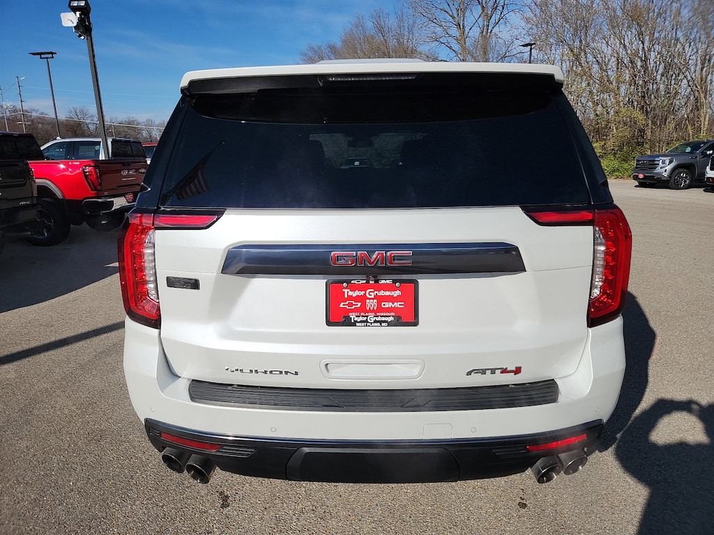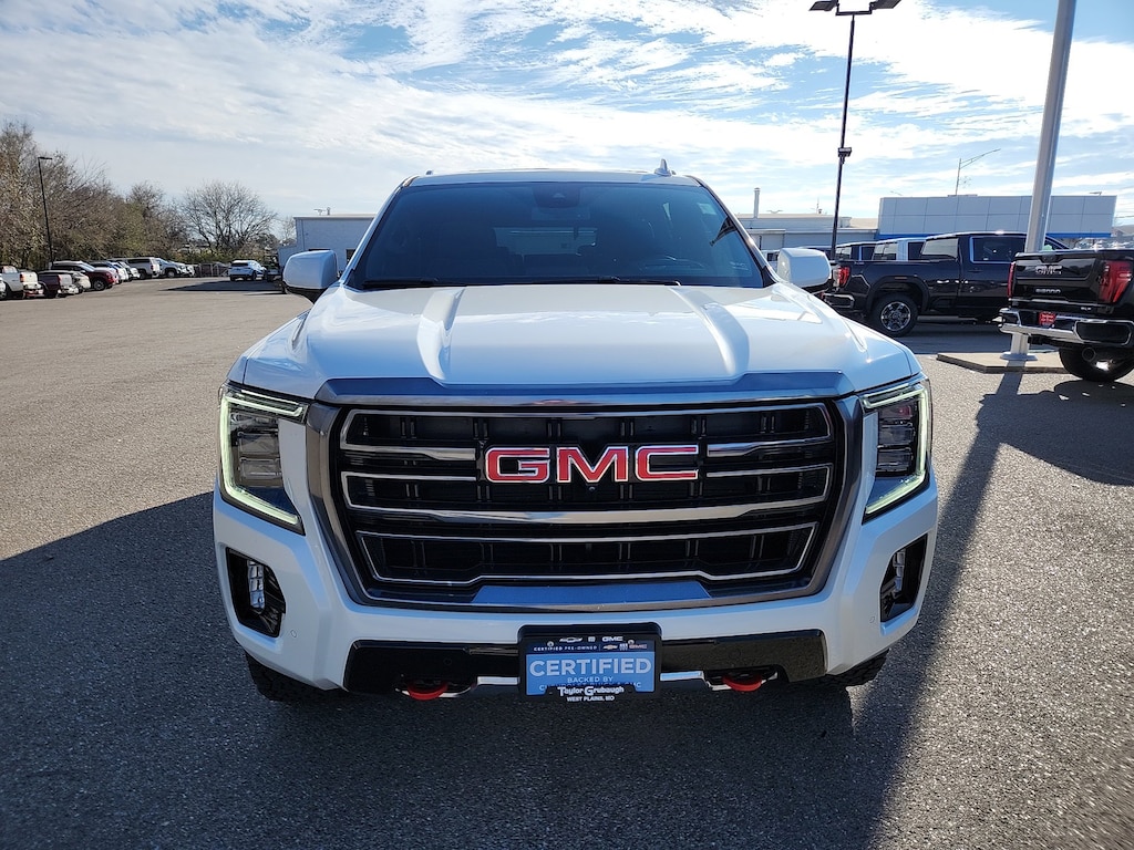 Leather, Remote Start, Bluetooth, Rear Camera, Intelink Radio, One Owner, Heated Seats, Cooled Seats, Apple CarPlay, Android Auto, Yukon AT4, GM Certified, 4D Sport Utility, EcoTec3 6.2L V8, 10-Speed Automatic with Overdrive, 4WD, White Frost Tricoat, Jet Black Leather, 15 Diagonal Multi-Color Head-Up Display, 2 Presets For Outside Rearview Mirrors, 3 Years of GMC Connected Services, 3 Years of OnStar Safety & Security, 3 Years of OnStar Safety & Security (DISC), 3.23 Rear Axle Ratio, 3rd Row 60/40 Power-Folding Split-Bench Seat, 3rd row seats: split-bench, 4-Wheel Disc Brakes, 9 Speakers, ABS brakes, Adaptive suspension, Air Conditioning, Air Ride Adaptive Suspension, Alloy wheels, AM/FM radio: SiriusXM with 360L, AM/FM Stereo, Apple CarPlay/Android Auto, AT4 Premium Plus Package, Auto High-beam Headlights, Auto-dimming door mirrors, Auto-dimming Rear-View mirror, Auto-leveling suspension, Automatic Emergency Braking, Automatic temperature control, Black Roof-Mounted Luggage Rack Side Rails, Bose 9-Speaker Stereo Audio System Feature, Brake assist, Bright Front & Rear Door Sill Plates, Bumpers: body-color, Compass, Delay-off headlights, Driver door bin, Driver vanity mirror, Dual Exhaust System, Dual front impact airbags, Dual front side impact airbags, Dual-Pane Panoramic Power Sunroof, Electronic Limited Slip Differential (eLSD), Electronic Stability Control, Emergency communication system: OnStar and GMC connected services capable, Extra Capacity Cooling System, Floor Console, Following Distance Indicator, Forward Collision Alert, Four wheel independent suspension, Front & Rear Park Assist, Front anti-roll bar, Front Bucket Seats, Front Center Armrest, Front dual zone A/C, Front fog lights, Front High-Approach Angle Fascia, Front Pedestrian Braking, Front reading lights, Fully automatic headlights, Garage door transmitter, Hands-Free Power Programmable Rear Liftgate, HD Surround Vision, Heated & Ventilated Driver & Front Passenger Seats, Heated 2nd Row Outboard Position Seats, Heated door mirrors, Heated Driver & Front Passenger Seats, Heated front seats, Heated rear seats, Heated Steering Wheel, Heated steering wheel, Heavy-Duty Air Filter, Hill Descent Control, Hitch Guidance w/Hitch View, Illuminated entry, Inside Rear-View Auto-Dimming Mirror, Integrated Trailer Brake Controller, IntelliBeam Automatic High Beam On/Off, Lane Change Alert w/Side Blind Zone Alert, Lane Keep Assist w/Lane Departure Warning, License Plate Front Mounting Package, Low tire pressure warning, Magnetic Ride Control Suspension, Max Trailering Package, Memory seat, Navigation System, Occupant sensing airbag, Outside Heated Power-Adjustable Mirrors, Outside temperature display, Overhead airbag, Overhead console, Panic alarm, Passenger door bin, Passenger vanity mirror, Perforated Leather Seating Surfaces, Power door mirrors, Power driver seat, Power Liftgate, Power passenger seat, Power Release 2nd Row 60/40 Split-Folding Bench Seat, Power Release 2nd Row Bucket Seats, Power steering, Power Tilt & Telescopic Steering Column, Power windows, Power-Retractable Assist Steps, Preferred Equipment Group 4SB, Premium Capability Package w/Active Response 4WD, Rain sensing wipers, Rear air conditioning, Rear anti-roll bar, Rear Cross Traffic Alert, Rear Pedestrian Alert, Rear reading lights, Rear seat center armrest, Rear window defroster, Rear window wiper, Red Horizontal-Mounted Recovery Hooks, Remote keyless entry, Roof rack: rails only, Safety Alert Seat, Security system, SiriusXM w/360L, Smart Trailer Integration Indicator, Speed control, Speed-sensing steering, Split folding rear seat, Spoiler, Steering wheel memory, Steering wheel mounted audio controls, Tachometer, Technology Package, Telescoping steering wheel, Tilt steering wheel, Traction control, Trailer Side Blind Zone Alert, Trip computer, Turn signal indicator mirrors, Universal Home Remote, Variably intermittent wipers, Ventilated front seats,