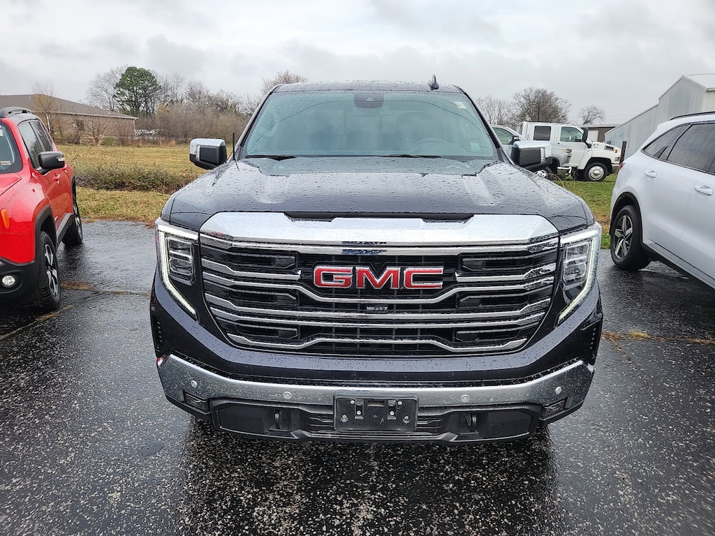 Leather, Remote Start, Bluetooth, Rear Camera, Intelink Radio, Low Miles, One Owner, Local Trade, Heated Seats, Cooled Seats, Apple CarPlay, Android Auto, Sierra 1500 SLT, 4D Crew Cab, EcoTec3 5.3L V8, 10-Speed Automatic, 4WD, Titanium Rush Metallic, Jet Black Leather, 10-Way Power Driver Seat Adjuster w/Lumbar, 10-Way Power Passenger Seat Adjuster w/Lumbar, 120-Volt Bed Mounted Power Outlet, 120-Volt Interior Power Outlet, 170 Amp Alternator, 2 Charge/Data USB Ports, 2 Charge/Data USB Ports Inside Center Console, 2 Type-C Charge-Only Rear USB Ports, 20 Polished Aluminum Wheels, 3.23 Rear Axle Ratio, 4-Wheel Disc Brakes, 6 Speakers, 6-Speaker Audio System Feature, ABS brakes, Adaptive Cruise Control, Air Conditioning, Alloy wheels, AM/FM radio: SiriusXM with 360L, Apple CarPlay/Android Auto, Auto High-beam Headlights, Auto-dimming door mirrors, Auto-dimming Rear-View mirror, Auto-Locking Rear Differential, Automatic Emergency Braking, Automatic temperature control, Auxiliary External Transmission Oil Cooler, Brake assist, Buckle to Drive, Bumpers: chrome, Chrome Header & Chrome Grille Insert Bars, Chrome Wheel To Wheel Assist Steps, Color-Keyed Carpeting Floor Covering, Compass, Deep-Tinted Glass, Delay-off headlights, Driver door bin, Driver Memory, Driver vanity mirror, Dual Exhaust System, Dual front impact airbags, Dual front side impact airbags, Electric Rear-Window Defogger, Electronic Precision Shift, Electronic Stability Control, Floor-Mounted Center Console, Following Distance Indicator, Forward Collision Alert, Front 40/20/40 Split-Bench Seat, Front anti-roll bar, Front Bucket Seats, Front Center Armrest w/Storage, Front dual zone A/C, Front fog lights, Front Frame-Mounted Black Recovery Hooks, Front License Plate Kit, Front Pedestrian Braking, Front Rain-Sensing Wipers, Front reading lights, Front wheel independent suspension, Fully automatic headlights, GMC Connected Access Capable, HD Rear Vision Camera, HD Surround Vision, Heated 2nd Row Outboard Seats, Heated door mirrors, Heated Driver & Front Outboard Passenger Seating, Heated front seats, Heated steering wheel, Heavy-Duty Air Filter, High Capacity Suspension Package, Hill Descent Control, Hitch Guidance, Hitch View, Illuminated entry, In-Vehicle Trailering System App, Integrated Trailer Brake Controller, IntelliBeam Automatic High Beam On/Off, Keyless Open & Start, Lane Keep Assist w/Lane Departure Warning, LED Cargo Area Lighting, Low tire pressure warning, Manual Tilt-Wheel & Telescoping Steering Column, Memory seat, Navigation System, Occupant sensing airbag, Off-Road Suspension, OnStar & GMC Connected Services Capable, Outside temperature display, Overhead airbag, Overhead console, Panic alarm, Passenger door bin, Passenger vanity mirror, Perf Leather-Appointed Front Outboard Seat Trim, Perimeter Lighting, Power Door Locks, Power door mirrors, Power driver seat, Power Front Passenger Windows w/Express Up/Down, Power Front Windows w/Driver Express Up/Down, Power passenger seat, Power Rake & Telescoping Steering Column, Power Rear Windows w/Express Down, Power Sliding Rear Window w/Rear Defogger, Power steering, Power windows, Preferred Equipment Group 4SA, Premium audio system: GMC Infotainment System, Premium Bose 7-Speaker Sound System, ProGrade Trailering System, Push Button Start, Radio data system, Radio: Premium GMC Infotainment Audio System, Rain sensing wipers, Rear Cross Traffic Braking, Rear Pedestrian Detection, Rear reading lights, Rear seat center armrest, Rear step bumper, Rear Wheelhouse Liners, Rear window defroster, Remote keyless entry, Remote Vehicle Starter System, Safety Alert Seat, Security system, Sierra Safety Plus Package, SiriusXM w/360L, SLT Convenience Package, SLT Preferred Package, SLT Premium Plus Package, Speed control, Speed-sensing steering, Split folding rear seat, Spray-On Pickup Bedliner w/GMC Logo, Standard Suspension Package, Steering Wheel Audio Controls, Steering whe