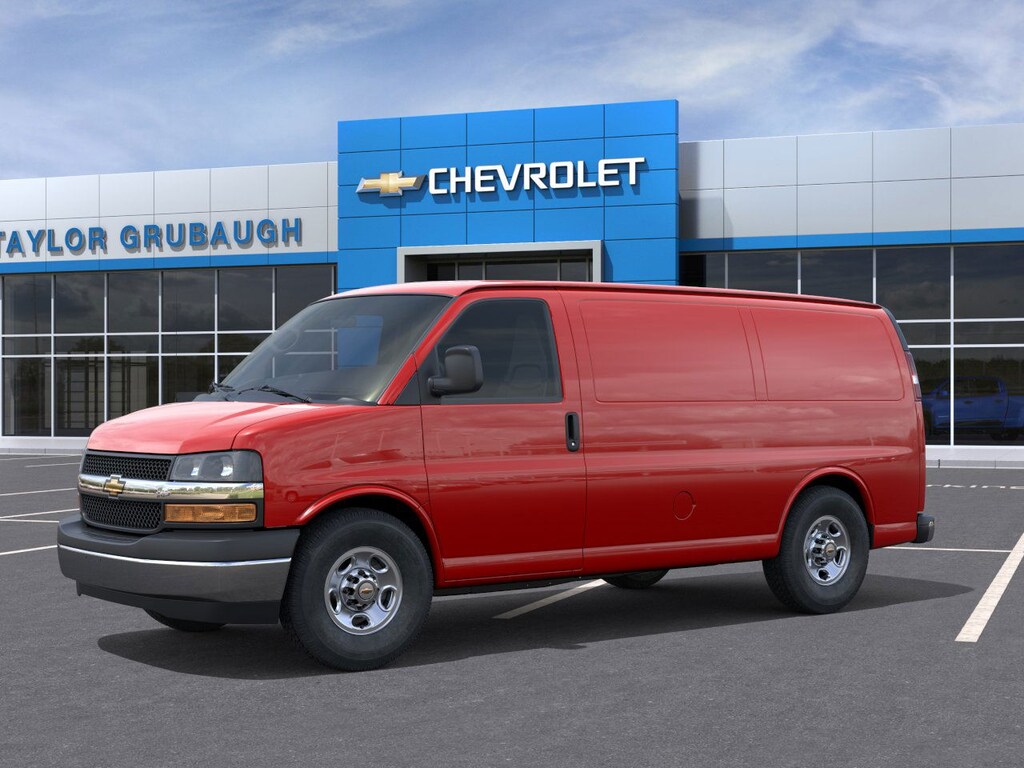 Red Hot 2026 Chevrolet Express 3500 Work Van Cargo RWD 8-Speed Automatic with Overdrive 4.3L V6 16 x 6.5 Steel Wheels, 2 Speakers, 3.42 Rear Axle Ratio, 4-Wheel Disc Brakes, ABS brakes, Air Conditioning, AM/FM radio, Chrome Appearance Package, Chrome Grille, Cruise Control, Delay-off headlights, Driver and Front Passenger High-Back Bucket Seats, Driver Convenience Package, Driver door bin, Driver's Seat Mounted Armrest, Dual front impact airbags, Dual front side impact airbags, Electronic Stability Control, Emergency communication system, Engine Cover Console with Swing-Out Storage Bin, Exterior Parking Camera Rear, Fixed Rear Door Window Glass, Front and Rear Chrome Bumpers with Step-Pad, Front anti-roll bar, Front Bucket Seats, Front Reclining High-Back Bucket Seats, Front wheel independent suspension, Full-Length Black Rubberized-Vinyl Floor Covering, Fully automatic headlights, Heated door mirrors, Low tire pressure warning, Occupant sensing airbag, Overhead airbag, Passenger cancellable airbag, Passenger door bin, Passenger seat mounted armrest, Power door mirrors, Power steering, Power windows, Radio: AM/FM Stereo with MP3 Player, Rear Door Glass, Rear Park Assist, Reclining Front Bucket Seats with Inboard Armrests, Side Blind Zone Alert, Single-Zone Manual Air Conditioning, Tachometer, Tilt Steering Wheel, Traction control, Trip computer, Variably intermittent wipers, Vinyl Seat Trim, Voltmeter, Wheel Trim with Chrome Center Caps.