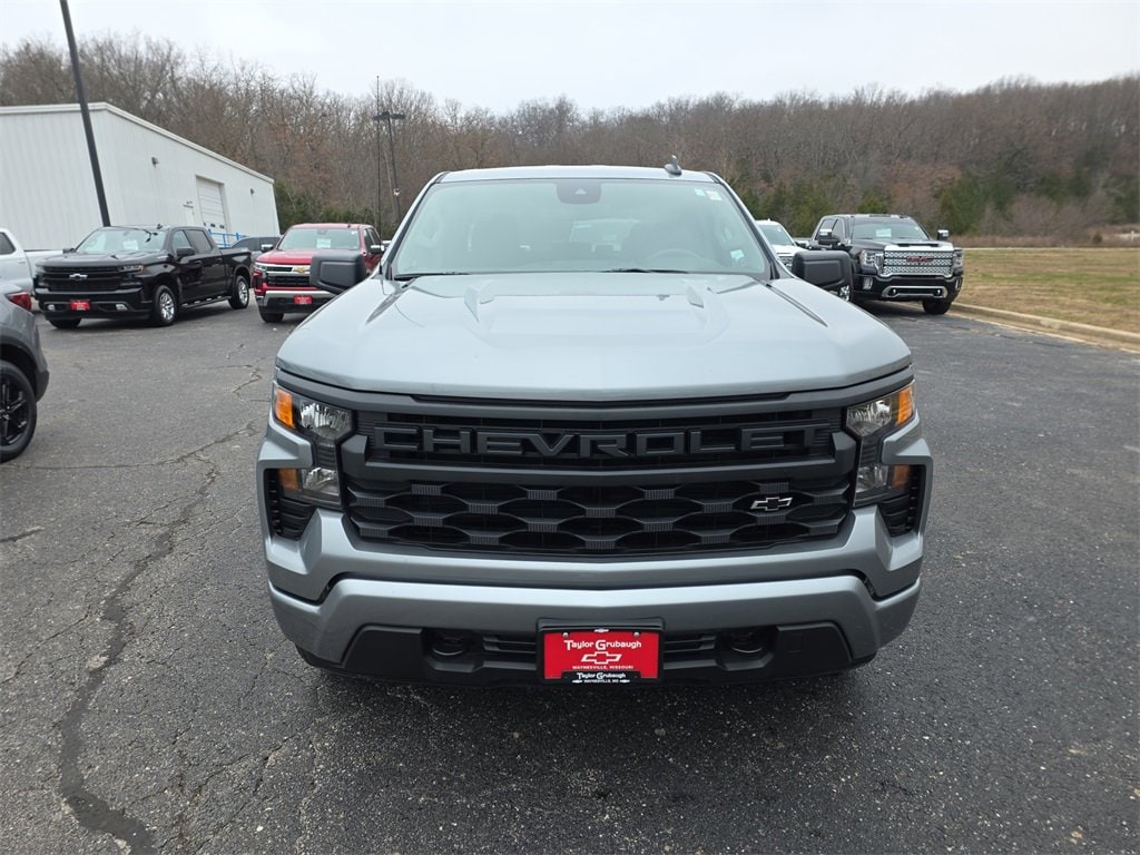 Sterling Gray Metallic 2026 Chevrolet Silverado 1500 Custom 4WD 8-Speed Automatic 2.7L I4 Turbocharged DOHC 16V LEV3-SULEV30 310hp Silverado 1500 Custom, 4D Extended Cab, 2.7L I4 Turbocharged DOHC 16V LEV3-SULEV30 310hp, 8-Speed Automatic, 4WD, Sterling Gray Metallic, Black Cloth, 10-Way Power Driver Seat with Lumbar, 120-Volt Bed Mounted Power Outlet, 120-Volt Interior Power Outlet, 3.5 Monochromatic Display Driver Info Center, 4 Black Round Assist Steps, 40/20/40 Front Split-Bench Seat, Black Chrome Exhaust Tip, Black Name Plates, Black Tailgate CHEVROLET Lettering, Bluetooth® For Phone, Cloth Seat Trim, Color-Keyed Carpeting Floor Covering, Custom Convenience Package, Custom Value Package, Dark Essentials Package, Deep-Tinted Glass, Dual Rear USB Ports (charge Only), Electric Rear-Window Defogger, Electronic Cruise Control, EZ Lift Power Lock and Release Tailgate, Front Black Bowtie Emblem, Front Frame-Mounted Black Recovery Hooks, Front Rubberized Vinyl Floor Mats, HD Rear Vision Camera, High Capacity Suspension Package, Hitch Guidance, LED Cargo Area Lighting, Manual Tilt Wheel Steering Column, OnStar Services Capable, Power Front Windows with Driver Express Up/Down, Power Front Windows with Passenger Express Down, Power Rear Windows with Express Down, Preferred Equipment Group 1CX, Rear 60/40 Folding Bench Seat (folds Up), Rear Rubberized-Vinyl Floor Mats, Remote Keyless Entry, Remote Vehicle Starter System, SiriusXM Trial Subscription, Standard Tailgate, Teen Driver, Theft Deterrent System (unauthorized Entry), Tire Pressure Monitoring System, Trailering Package, Turbomax Blackout Package, Wheels: 20 x 9 High Gloss Black Painted Aluminum, Wi-Fi Hot Spot Capable, 3.42 Rear Axle Ratio, 4-Wheel Disc Brakes, 6 Speakers, 6-Speaker Audio System, ABS brakes, Air Conditioning, Alloy wheels, AM/FM radio: SiriusXM, Apple CarPlay/Android Auto, Auto High-beam Headlights, Auto-Locking Rear Differential, Automatic Emergency Braking, Brake assist, Bumpers: body-color, Chevytec Spray-on Black Bedliner, Compass, Delay-off headlights, Driver door bin, Driver vanity mirror, Dual front impact airbags, Dual front side impact airbags, Electronic Stability Control, Emergency communication system: OnStar, Following Distance Indicator, Forward Collision Alert, Front anti-roll bar, Front Center Armrest w/Storage, Front License Plate Kit, Front Pedestrian Braking, Front reading lights, Front wheel independent suspension, Fully automatic headlights, Heated door mirrors, Illuminated entry, Integrated Trailer Brake Controller, IntelliBeam Automatic High Beam on/Off, Lane Keep Assist with Lane Departure Warning, Low tire pressure warning, Occupant sensing airbag, Outside temperature display, Overhead airbag, Overhead console, Panic alarm, Passenger door bin, Passenger vanity mirror, Power door mirrors, Power driver seat, Power steering, Power windows, Premium audio system: Chevrolet Infotainment 3, Radio data system, Radio: Chevrolet Infotainment 3 System, Rear reading lights, Rear step bumper, Rear Wheelhouse Liners, Rear window defroster, Remote keyless entry, Security system, Speed control, Speed-sensing steering, Split folding rear seat, Tachometer, Tilt steering wheel, Traction control, Trip computer, Variably intermittent wipers, Voltmeter, Wheels: 20 x 9 Bright Silver Painted Aluminum, Silverado 1500 Custom, 4D Extended Cab, 2.7L I4 Turbocharged DOHC 16V LEV3-SULEV30 310hp, 8-Speed Automatic, 4WD, Sterling Gray Metallic, Black Cloth, 10-Way Power Driver Seat with Lumbar, 120-Volt Bed Mounted Power Outlet, 120-Volt Interior Power Outlet, 3.5 Monochromatic Display Driver Info Center, 4 Black Round Assist Steps, 40/20/40 Front Split-Bench Seat, Black Chrome Exhaust Tip, Black Name Plates, Black Tailgate CHEVROLET Lettering, Bluetooth® For Phone, Cloth Seat Trim, Co Price includes: $1000 - Chevrolet Select Market Bonus Cash. Exp. 01/02/2026 $1000 - GM Bonus Cash. Exp. 01/02/2026 $3000 - Chevrolet C