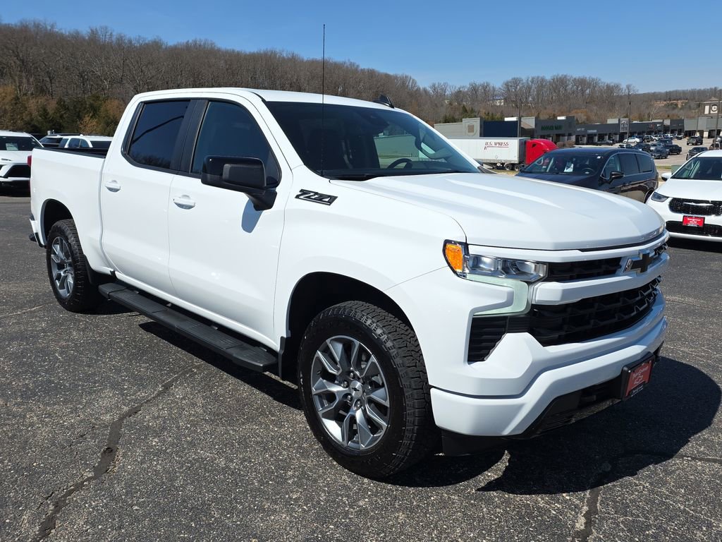 Summit White 2026 Chevrolet Silverado 1500 RST 4WD 10-Speed Automatic EcoTec3 5.3L V8 Remote Start, Bluetooth, Rear Camera, Silverado 1500 RST, 4D Crew Cab, EcoTec3 5.3L V8, 10-Speed Automatic, 4WD, Summit White, Jet Black Cloth, 10-Way Power Driver Seat with Lumbar, 12.3 Multicolor Reconfigurable Digital Display, 120-Volt Bed Mounted Power Outlet, 120-Volt Interior Power Outlet, 40/20/40 Front Split-Bench Seat, 6-Speaker Audio System, All Star Edition Plus, All-Star Edition, All-Weather Floor Liner, Auto-Locking Rear Differential, Black Name Plates, Bluetooth® For Phone, Chevytec Spray-on Black Bedliner, Cloth Seat Trim, Color-Keyed Carpeting Floor Covering, Convenience Package, Convenience Package II, Dark Essentials Package, Deep-Tinted Glass, Dual Exhaust with Polished Outlets, Dual Rear USB Ports (charge Only), Dual-Zone Automatic Climate Control, Electric Rear-Window Defogger, Electronic Cruise Control, EZ Lift Power Lock and Release Tailgate, Front Frame-Mounted Black Recovery Hooks, Front LED Fog Lamps, Front Rubberized Vinyl Floor Mats, HD Rear Vision Camera, Heated Driver and Front Outboard Passenger Seats, Heated Power-Adjustable Outside Mirrors, Heated Steering Wheel, Heavy-Duty Air Filter, High Gloss Black Mirror Caps, Hill Descent Control, Hitch Guidance, Hitch Guidance with Hitch View, in-Vehicle Trailering System App, Inside Rearview Mirror with Tilt, Integrated Trailer Brake Controller, Keyless Open and Start, LED Cargo Area Lighting, Manual Tilt/Telescoping Steering Column, Off-Road Suspension, OnStar Services Capable, Power Front Windows with Driver Express Up/Down, Power Front Windows with Passenger Express Down, Power Rear Windows with Express Down, Power Sliding Rear Window with Rear Defogger, Preferred Equipment Group 1SP, Premium Bose 7-Speaker Sound System, Protection Package, Rear 60/40 Folding Bench Seat (folds Up), Rear Rubberized-Vinyl Floor Mats, Rear Wheelhouse Liners, Remote Vehicle Starter System, SiriusXM with 360L Trial Subscription, Standard Suspension Package, Standard Tailgate, Steering Wheel Audio Controls, Teen Driver, Theft Deterrent System (unauthorized Entry), Tire Pressure Monitoring System, Trailering Package, Universal Home Remote, Wheels: 18 x 8.5 Bright Silver Painted Aluminum, Wheels: 20 x 9 Painted Aluminum, Wi-Fi Hot Spot Capable, Wrapped Steering Wheel, Z71 Off-Road and Protection Package, Z71 Off-Road Package, 170 Amp Alternator, 2 USB Data Ports, 220 Amp Alternator, 3.23 Rear Axle Ratio, 4-Wheel Disc Brakes, 6 Speakers, 6 Rectangular Black Tubular Assist Steps, ABS brakes, Air Conditioning, Alloy wheels, AM/FM radio: SiriusXM with 360L, Apple CarPlay/Android Auto, Auto High-beam Headlights, Automatic Emergency Braking, Automatic temperature control, Auxiliary External Transmission Oil Cooler, Black Tailgate CHEVROLET Lettering, Brake assist, Bumpers: body-color, Compass, Delay-off headlights, Driver door bin, Driver vanity mirror, Dual front impact airbags, Dual front side impact airbags, Electronic Stability Control, Electronic Transmission Range Selector Shifter, Emergency communication system: OnStar, External Engine Oil Cooler, Floor Mounted Center Console, Following Distance Indicator, Forward Collision Alert, Front anti-roll bar, Front Bucket Seats, Front Center Armrest w/Storage, Front dual zone A/C, Front fog lights, Front License Plate Kit, Front Pedestrian Braking, Front reading lights, Front wheel independent suspension, Fully automatic headlights, Heated door mirrors, Heated front seats, Heated steering wheel, Illuminated entry, IntelliBeam Automatic High Beam on/Off, Lane Keep Assist with Lane Departure Warning, Low tire pressure warning, Occupant sensing airbag, Outside temperature display, Overhead airbag, Overhead console, Panic alarm, Passenger door bin, Passenger vanity mirror, Power door mirrors, Power driver seat, Power steerin Price includes: $1500 - Chevrolet Bonus Cash. Exp. 03/31/2026 $3250 - Chevrolet Consumer Cash Program. Exp. 03/31/2026