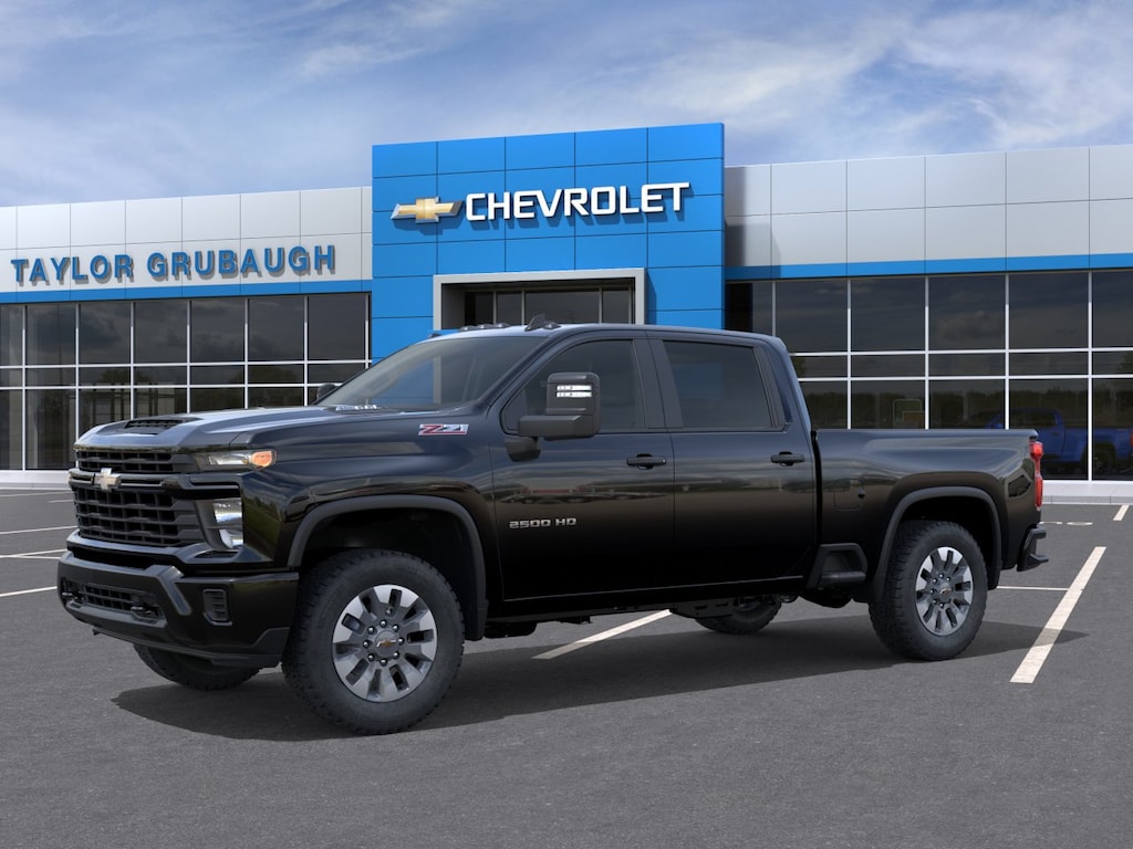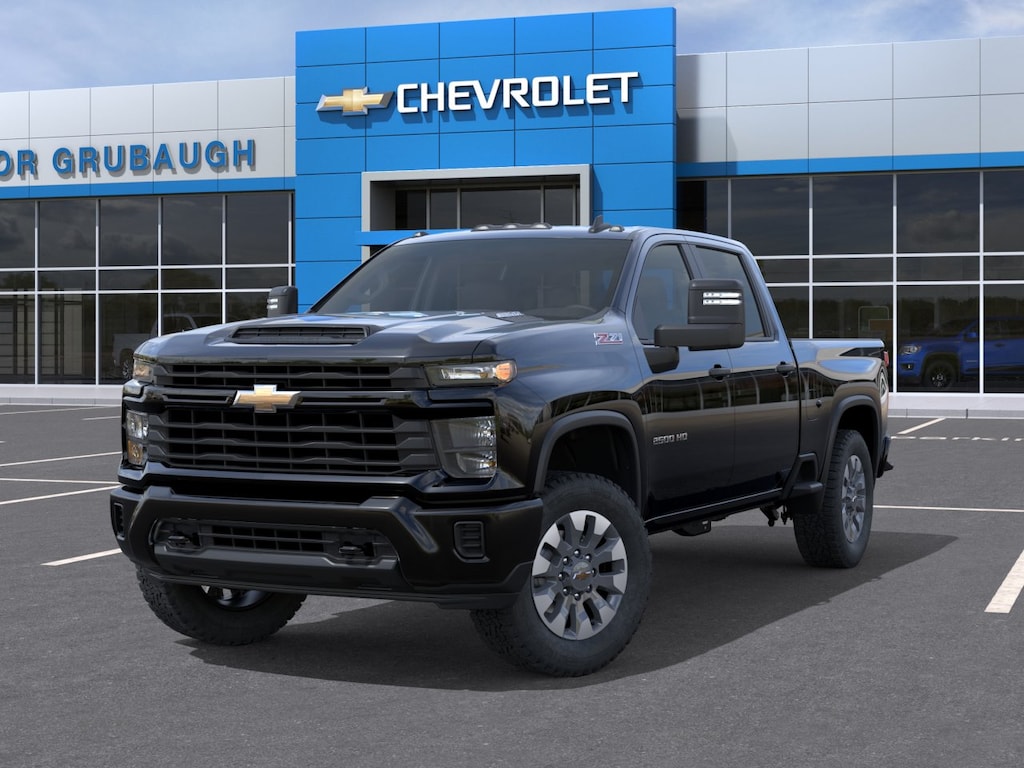 Black 2026 Chevrolet Silverado 2500HD Custom 4WD 10-Speed Automatic 6.6L V8 10-Speed Automatic, 4WD, Jet Black Cloth, 10-Way Power Driver Seat Adjuster with Lumbar, 120-Volt Bed Mounted Power Outlet, 120-Volt Interior Power Outlet, 170 Amp Alternator, 2-Speed Electronic Shift Transfer Case, 3.5 Diagonal Monochromatic Display DIC, 3.73 Rear Axle Ratio, 4-Wheel Disc Brakes, 6 Speakers, 6-Speaker Audio System, 720 Cold-Cranking Amps Heavy-Duty Battery, ABS brakes, Air Conditioning, Alloy wheels, AM/FM radio: SiriusXM with 360L, Apple CarPlay/Android Auto, Auto High-beam Headlights, Black Chevytec Spray-on Bedliner, Black Mirror Caps, Bluetooth® For Phone, Brake assist, Chevrolet Connected Access Capable, Cloth Seat Trim, Color-Keyed Carpeting Floor Covering, Compass, Custom Convenience Package, Deep-Tinted Glass, Delay-off headlights, Driver door bin, Dual front impact airbags, Dual front side impact airbags, Dual Rear USB Ports (charge Only), Durabed Pickup Bed, Electric Rear-Window Defogger, Electronic Cruise Control with Set and Resume Speed, Electronic Stability Control, Emergency communication system: OnStar, EZ Lift Power Lock and Release Tailgate, Front 40/20/40 Split-Bench Seats with Lockable Storage, Front anti-roll bar, Front Center Armrest w/Storage, Front reading lights, Front Rubberized Vinyl Floor Mats, Front wheel independent suspension, Fully automatic headlights, Gooseneck/5th Wheel Prep Package, HD Rear Vision Camera, Heated door mirrors, Heated Vertical Trailering Mirrors, Hill Descent Control, Hitch Package, Illuminated entry, LED Cargo Area Lighting, LED Smoked Amber Roof Marker Lamps, Locking Tailgate, Low tire pressure warning, Manual Tailgate Function with No EZ Lift, Manual Tilt-Wheel Steering Column, Occupant sensing airbag, Off-Road Suspension, OnStar Services Capable, Outside temperature display, Overhead airbag, Overhead console, Panic alarm, Passenger door bin, Passenger vanity mirror, Power Door Locks, Power door mirrors, Power Front Windows with Driver Express Up/Down, Power Front Windows with Passenger Express Down, Power Rear Windows with Express Down, Power steering, Power windows, Premium audio system: Chevrolet Infotainment 3, Push Button Start, Radio: Chevrolet Infotainment 3 System, Rear 60/40 Folding Bench Seat (folds Up), Rear reading lights, Rear Rubberized Vinyl Floor Mats, Rear step bumper, Remote Keyless Entry, Remote keyless entry, Remote Vehicle Starter System, SiriusXM with 360L Trial Subscription, Speed control, Split folding rear seat, Standard Tailgate, Suspension Package, Tachometer, Tilt steering wheel, Traction control, Trip computer, Turn signal indicator mirrors, Unauthorized Entry Theft-Deterrent System, Variably intermittent wipers, Voltmeter, Wheels: 20 10-Spoke Machined Aluminum, Wi-Fi Hotspot Capable, Wireless Phone Projection, Z71 Off-Road Package, 10-Speed Automatic, 4WD, Jet Black Cloth.
