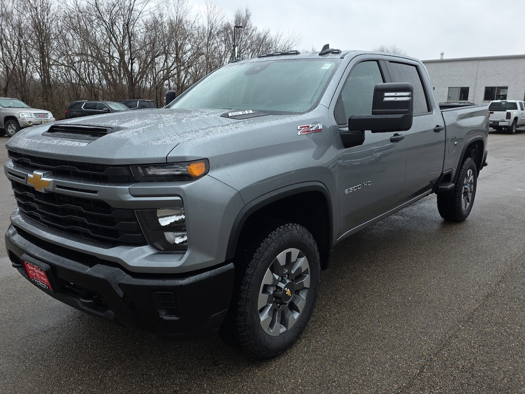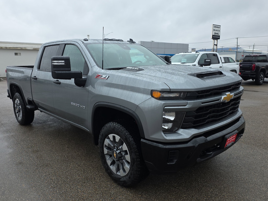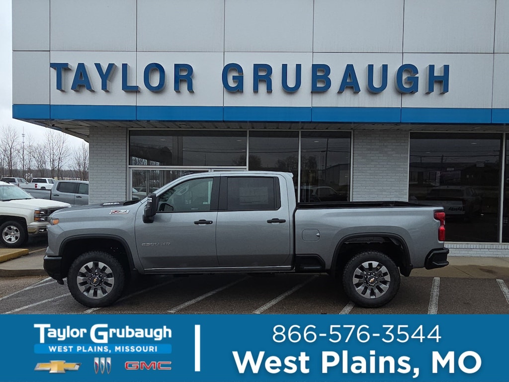 Sterling Gray Metallic 2026 Chevrolet Silverado 2500HD Custom 4WD 10-Speed Automatic 6.6L V8 10-Speed Automatic, 4WD, Jet Black Cloth, 170 Amp Alternator, 2-Speed Electronic Shift Transfer Case, 3.5 Diagonal Monochromatic Display DIC, 3.73 Rear Axle Ratio, 4-Wheel Disc Brakes, 6 Speakers, 6-Speaker Audio System, 720 Cold-Cranking Amps Heavy-Duty Battery, ABS brakes, Air Conditioning, Alloy wheels, AM/FM radio: SiriusXM with 360L, Apple CarPlay/Android Auto, Auto High-beam Headlights, Black Chevytec Spray-on Bedliner, Black Mirror Caps, Bluetooth® For Phone, Brake assist, Chevrolet Connected Access Capable, Cloth Seat Trim, Color-Keyed Carpeting Floor Covering, Compass, Deep-Tinted Glass, Delay-off headlights, Driver door bin, Dual front impact airbags, Dual front side impact airbags, Durabed Pickup Bed, Electronic Cruise Control with Set and Resume Speed, Electronic Stability Control, Emergency communication system: OnStar, Front 40/20/40 Split-Bench Seats with Lockable Storage, Front anti-roll bar, Front Center Armrest w/Storage, Front License Plate Kit, Front reading lights, Front Rubberized Vinyl Floor Mats, Front wheel independent suspension, Fully automatic headlights, Gooseneck/5th Wheel Prep Package, HD Rear Vision Camera, Heated door mirrors, Heated Vertical Trailering Mirrors, Hill Descent Control, Hitch Package, Illuminated entry, LED Smoked Amber Roof Marker Lamps, Locking Tailgate, Low tire pressure warning, Manual Tailgate Function with No EZ Lift, Manual Tilt-Wheel Steering Column, Occupant sensing airbag, Off-Road Suspension, OnStar Services Capable, Outside temperature display, Overhead airbag, Overhead console, Panic alarm, Passenger door bin, Passenger vanity mirror, Power Door Locks, Power door mirrors, Power Front Windows with Driver Express Up/Down, Power Front Windows with Passenger Express Down, Power Rear Windows with Express Down, Power steering, Power windows, Preferred Equipment Group 1CX, Premium audio system: Chevrolet Infotainment 3, Push Button Start, Radio: Chevrolet Infotainment 3 System, Rear 60/40 Folding Bench Seat (folds Up), Rear reading lights, Rear Rubberized Vinyl Floor Mats, Rear step bumper, Remote Keyless Entry, Remote keyless entry, SiriusXM with 360L Trial Subscription, Speed control, Split folding rear seat, Standard Tailgate, Suspension Package, Tachometer, Tilt steering wheel, Traction control, Trip computer, Turn signal indicator mirrors, Variably intermittent wipers, Voltmeter, Wheels: 20 10-Spoke Machined Aluminum, Wi-Fi Hotspot Capable, Wireless Phone Projection, Z71 Off-Road Package, 10-Speed Automatic, 4WD, Jet Black Cloth.