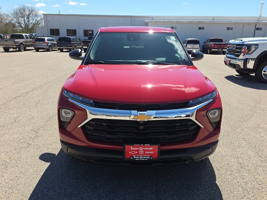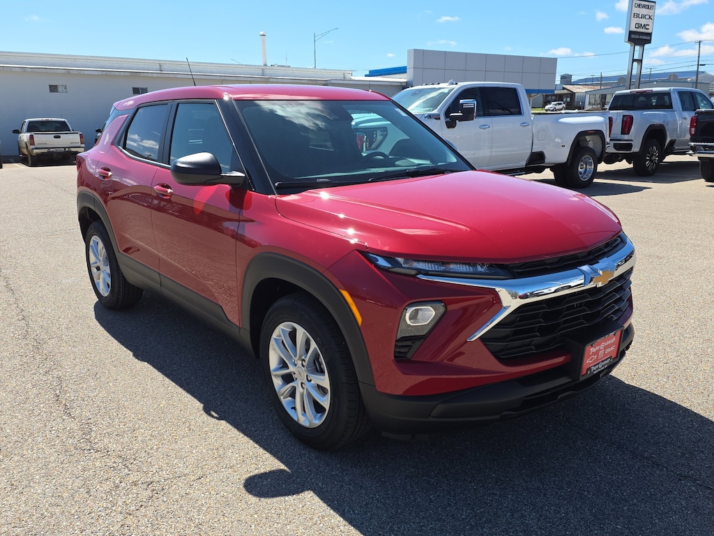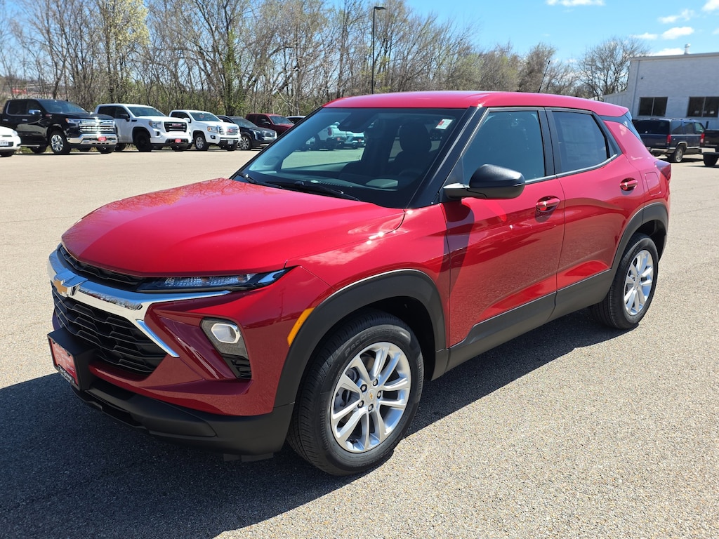 Apex Red 2026 Chevrolet TrailBlazer LS FWD CVT 1.2L I3 DI Flex Fuel Turbocharged DOHC 12V LEV3-SULEV30 137hp 1 Type-A and 1 Type-C USB Ports, 4 Speakers, 4-Speaker Audio System Feature, 4-Way Manual Front Passenger Seat Adjuster, 4-Wheel Disc Brakes, 5.45 Final Drive Axle Ratio, 6-Way Manual Driver Seat Adjuster, ABS brakes, Air Conditioning, Alloy wheels, AM/FM radio: SiriusXM, Auto High-beam Headlights, Brake assist, Bumpers: body-color, Cloth Seat Trim, Compass, Delay-off headlights, Driver door bin, Driver vanity mirror, Dual front impact airbags, Dual front side impact airbags, Electronic Stability Control, Emergency communication system: OnStar and Chevrolet connected services capable, Exterior Parking Camera Rear, Flat-Folding Front Passenger Seatback, Front anti-roll bar, Front Bucket Seats, Front Center Armrest, Front reading lights, Front wheel independent suspension, Fully automatic headlights, Illuminated entry, Knee airbag, Lane Change Alert with Side Blind Zone Alert, Low tire pressure warning, LS Confidence Package, LS Convenience Package, Occupant sensing airbag, Overhead airbag, Overhead console, Panic alarm, Passenger door bin, Passenger vanity mirror, Power door mirrors, Power steering, Power windows, Radio data system, Radio: AM/FM Stereo Audio System, Rear Cross Traffic Alert, Rear Park Assist, Rear side impact airbag, Rear window defroster, Rear window wiper, Rear Windows and Liftgate Deep-Tinted Glass, Remote keyless entry, Remote Start, Ride and Handling Suspension, Security system, SiriusXM Trial Subscription, Speed control, Split folding rear seat, Spoiler, Steering wheel mounted audio controls, Tachometer, Telescoping steering wheel, Tilt steering wheel, Traction control, Trip computer, Variably intermittent wipers, Wheels: 17 Silver-Painted Aluminum, Wireless Apple CarPlay/Android Auto.