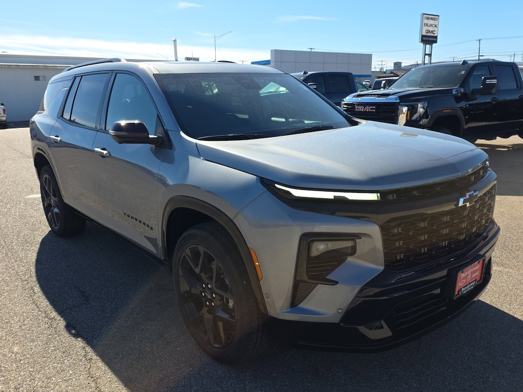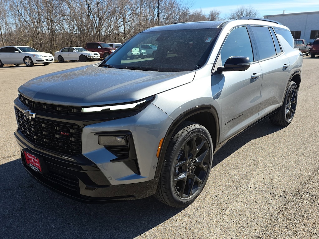 Sterling Gray Metallic 2026 Chevrolet Traverse RS FWD 8-Speed Automatic 2.5L DOHC 12 Speakers, 3rd row seats: split-bench, 4-Wheel Disc Brakes, 6-Way Power Front Passenger Seat Adjuster, 8-Way Power Driver Seat Adjuster, ABS brakes, Air Conditioning, Alloy wheels, AM/FM radio: SiriusXM with 360L, Apple CarPlay/Android Auto, Auto High-beam Headlights, Auto tilt-away steering wheel, Auto-dimming door mirrors, Automatic temperature control, Bose Premium 12-Speaker Audio System Feature, Brake assist, Bumpers: body-color, Child-Seat-Sensing Airbag, Compass, Delay-off headlights, Driver 4-Way Power Lumbar Seat Adjuster, Driver door bin, Driver vanity mirror, Dual front impact airbags, Dual front side impact airbags, Electronic Stability Control, Emergency communication system: OnStar, Exterior Parking Camera Rear, Four wheel independent suspension, Front anti-roll bar, Front Bucket Seats, Front Center Armrest, Front dual zone A/C, Front Passenger 4-Way Power Lumbar Seat Adjuster, Front reading lights, Fully automatic headlights, Garage door transmitter, Heated door mirrors, Heated Driver and Front Passenger Seats, Heated front seats, Heated rear seats, Heated steering wheel, Illuminated entry, Low tire pressure warning, Memory seat, Navigation System, Occupant sensing airbag, Outside temperature display, Overhead airbag, Overhead console, Panic alarm, Passenger door bin, Passenger vanity mirror, Perforated Leather-Appointed Seat Trim, Power door mirrors, Power driver seat, Power Dual Glass Panoramic Sliding Sunroof, Power Liftgate, Power passenger seat, Power steering, Power windows, Radio data system, Radio: : Audio System w/17.7 Diagonal Display, Rain sensing wipers, Rear air conditioning, Rear anti-roll bar, Rear reading lights, Rear window defroster, Rear window wiper, Remote keyless entry, Security system, SiriusXM with 360L Trial Subscription, Speed control, Speed-sensing steering, Spoiler, Sport steering wheel, Steering wheel memory, Steering wheel mounted audio controls, Tachometer, Telescoping steering wheel, Tilt steering wheel, Traction control, Trip computer, Turn signal indicator mirrors, Variably intermittent wipers, Ventilated Driver and Front Passenger Seats, Ventilated front seats, Voltmeter, Wheels: 22 High Gloss Black Painted Aluminum.