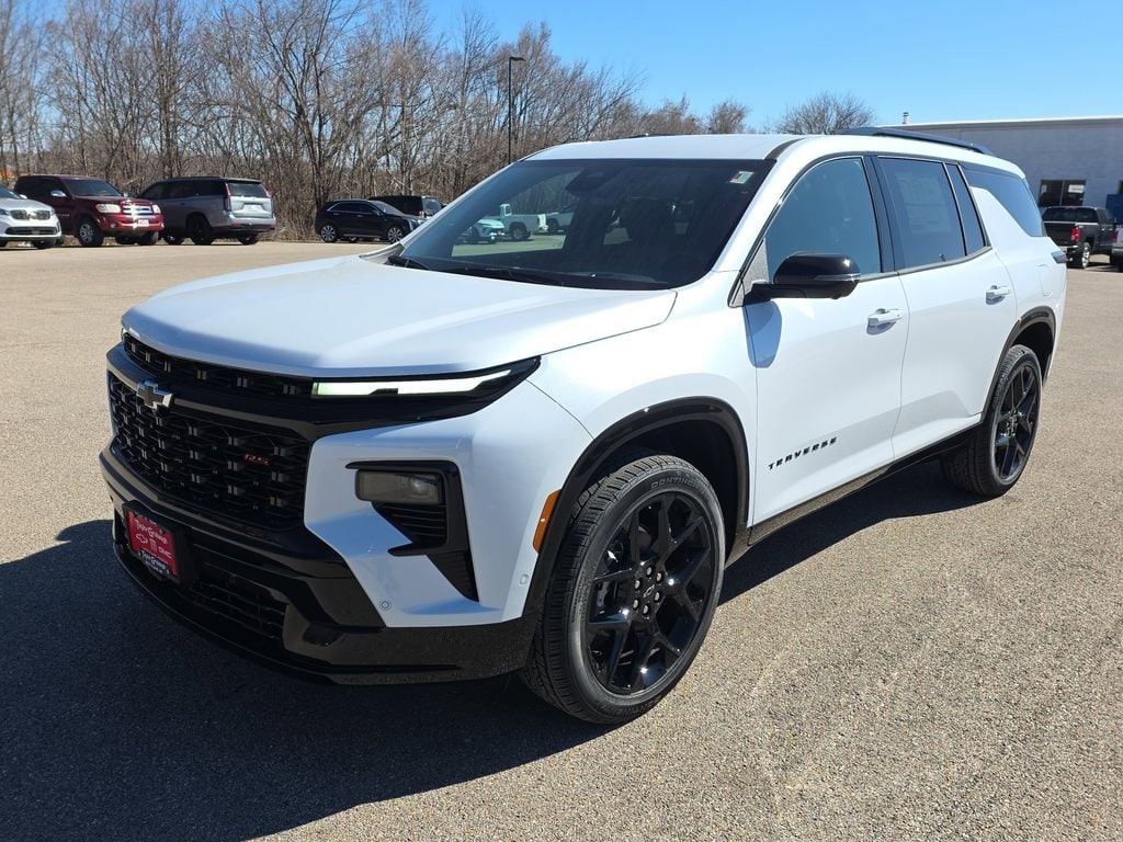 Polar White Tricoat 2026 Chevrolet Traverse RS FWD 8-Speed Automatic 2.5L DOHC 12 Speakers, 3rd row seats: split-bench, 4-Wheel Disc Brakes, 6-Way Power Front Passenger Seat Adjuster, 8-Way Power Driver Seat Adjuster, ABS brakes, Air Conditioning, Alloy wheels, AM/FM radio: SiriusXM with 360L, Apple CarPlay/Android Auto, Auto High-beam Headlights, Auto tilt-away steering wheel, Auto-dimming door mirrors, Automatic temperature control, Bose Premium 12-Speaker Audio System Feature, Brake assist, Bumpers: body-color, Child-Seat-Sensing Airbag, Compass, Delay-off headlights, Driver 4-Way Power Lumbar Seat Adjuster, Driver door bin, Driver vanity mirror, Dual front impact airbags, Dual front side impact airbags, Electronic Stability Control, Emergency communication system: OnStar, Exterior Parking Camera Rear, Four wheel independent suspension, Front anti-roll bar, Front Bucket Seats, Front Center Armrest, Front dual zone A/C, Front Passenger 4-Way Power Lumbar Seat Adjuster, Front reading lights, Fully automatic headlights, Garage door transmitter, Heated door mirrors, Heated Driver and Front Passenger Seats, Heated front seats, Heated rear seats, Heated steering wheel, Illuminated entry, Low tire pressure warning, Memory seat, Navigation System, Occupant sensing airbag, Outside temperature display, Overhead airbag, Overhead console, Panic alarm, Passenger door bin, Passenger vanity mirror, Perforated Leather-Appointed Seat Trim, Power door mirrors, Power driver seat, Power Liftgate, Power passenger seat, Power steering, Power windows, Preferred Equipment Group 1RS, Radio data system, Radio: : Audio System w/17.7 Diagonal Display, Rain sensing wipers, Rear air conditioning, Rear anti-roll bar, Rear reading lights, Rear window defroster, Rear window wiper, Remote keyless entry, Security system, SiriusXM with 360L Trial Subscription, Speed control, Speed-sensing steering, Spoiler, Sport steering wheel, Steering wheel memory, Steering wheel mounted audio controls, Tachometer, Telescoping steering wheel, Tilt steering wheel, Traction control, Trip computer, Turn signal indicator mirrors, Variably intermittent wipers, Ventilated Driver and Front Passenger Seats, Ventilated front seats, Voltmeter, Wheels: 22 High Gloss Black Painted Aluminum.