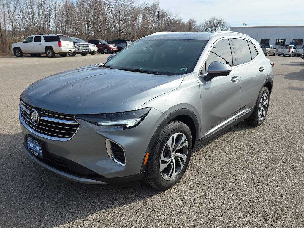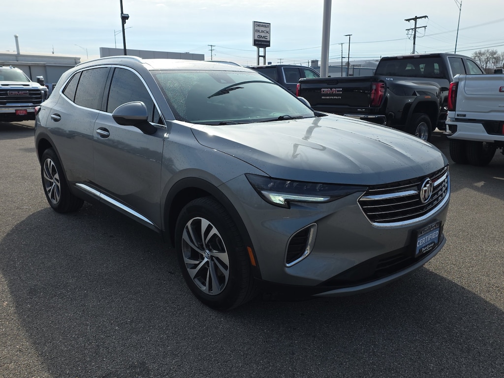 GM Certified, 3.47 Final Drive Axle Ratio, 4-Wheel Disc Brakes, 7 Speakers, 7-Speaker Audio System Feature w/Amplifier, 8-Way Power Driver Seat Adjuster, ABS brakes, Air Conditioning, Alloy wheels, AM/FM radio: SiriusXM, Apple CarPlay/Android Auto, Auto High-beam Headlights, Auto-dimming door mirrors, Auto-dimming Rear-View mirror, Automatic Emergency Braking, Automatic temperature control, Brake assist, Bumpers: body-color, Compass, Delay-off headlights, Driver door bin, Driver vanity mirror, Dual front impact airbags, Dual front side impact airbags, Electronic Stability Control, Emergency communication system: OnStar and Buick connected services capable, Following Distance Indicator, Forward Collision Alert, Four wheel independent suspension, Front anti-roll bar, Front Bin Center Console USB Ports, Front Bucket Seats, Front Center Armrest, Front dual zone A/C, Front Passenger 8-Way Power Seat Adjuster, Front Pedestrian Braking, Front reading lights, Fully automatic headlights, Heated door mirrors, Heated Driver & Front Passenger Seats, Heated front seats, Heated steering wheel, Illuminated entry, IntelliBeam Headlamp Control w/Auto High Beam, Knee airbag, Lane Keep Assist w/Lane Departure Warning, Low tire pressure warning, Memory seat, Occupant sensing airbag, Outside temperature display, Overhead airbag, Overhead console, Panic alarm, Passenger door bin, Passenger vanity mirror, Perforated Leather-Appointed Seat Trim, Power door mirrors, Power driver seat, Power Liftgate, Power passenger seat, Power steering, Power windows, Preferred Equipment Group 1SL, Premium audio system: Buick Infotainment System, Radio data system, Radio: Buick Infotainment System AM/FM Stereo, Rear anti-roll bar, Rear reading lights, Rear seat center armrest, Rear window defroster, Rear window wiper, Remote keyless entry, Security system, SiriusXM Radio, Speed control, Split folding rear seat, Spoiler, Steering wheel mounted audio controls, Telescoping steering wheel, Tilt steering wheel, Traction control, Trip computer, USB Charging-Only Ports, Variably intermittent wipers, Wheels: 18 Machined Aluminum w/Light Silver Met, Wireless Apple CarPlay/Wireless Android Auto. Certified. Moonstone Gray Metallic 2023 Buick Envision Essence 2.0L Turbocharged 9-Speed Automatic AWD 4D Sport Utility