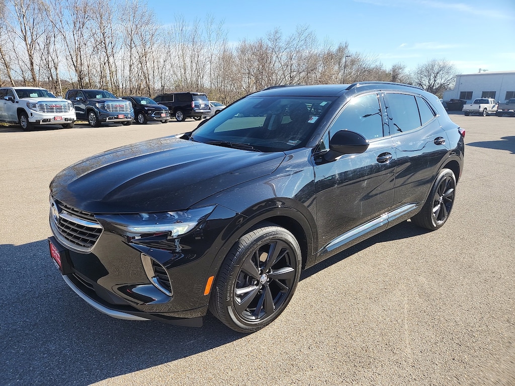 Leather, Remote Start, Bluetooth, Rear Camera, Intelink Radio, One Owner, Heated Seats, Apple CarPlay, Android Auto, Envision Essence, 4D Sport Utility, 2.0L Turbocharged, 9-Speed Automatic, FWD, Ebony Twilight Metallic, Ebony Seats Leather, 3.47 Final Drive Axle Ratio, 4-Wheel Disc Brakes, 7 Speakers, 7-Speaker Audio System Feature w/Amplifier, 8-Way Power Driver Seat Adjuster, ABS brakes, Air Conditioning, Alloy wheels, AM/FM radio: SiriusXM, Apple CarPlay/Android Auto, Auto High-beam Headlights, Auto-dimming door mirrors, Auto-dimming Rear-View mirror, Automatic Emergency Braking, Automatic temperature control, Black Roof Rails, Body-Color Door Handles, Brake assist, Bumpers: body-color, Cargo Area Tray (LPO), Carpeted Front & Rear Floor Mats, Compass, Delay-off headlights, Driver door bin, Driver vanity mirror, Dual front impact airbags, Dual front side impact airbags, Electronic Stability Control, Emergency communication system: OnStar and Buick connected services capable, Following Distance Indicator, Forward Collision Alert, Four wheel independent suspension, Front anti-roll bar, Front Bin Center Console USB Ports, Front Bucket Seats, Front Center Armrest, Front dual zone A/C, Front Passenger 8-Way Power Seat Adjuster, Front Pedestrian Braking, Front reading lights, Fully automatic headlights, Heated door mirrors, Heated Driver & Front Passenger Seats, Heated front seats, Heated steering wheel, Illuminated entry, IntelliBeam Headlamp Control w/Auto High Beam, Knee airbag, Lane Keep Assist w/Lane Departure Warning, Low tire pressure warning, Lower Trim/Wheel Arch Moldings, Memory seat, Not Equipped w/Lane Change & Rear Cross Traffic Alerts, Not Equipped w/Rear Park Assist, Occupant sensing airbag, Outside temperature display, Overhead airbag, Overhead console, Panic alarm, Passenger door bin, Passenger vanity mirror, Perforated Leather-Appointed Seat Trim, Power door mirrors, Power driver seat, Power Liftgate, Power Panoramic Tilt-Sliding Moonroof, Power passenger seat, Power steering, Power windows, Preferred Equipment Group 1SL, Premium audio system: Buick Infotainment System, Radio data system, Radio: Buick Infotainment System AM/FM Stereo, Rear anti-roll bar, Rear Cargo Compartment Cover, Rear reading lights, Rear seat center armrest, Rear window defroster, Rear window wiper, Remote keyless entry, Security system, SiriusXM Radio, Speed control, Split folding rear seat, Spoiler, Sport Alloy Pedals, Sport Touring Package, Steering wheel mounted audio controls, Telescoping steering wheel, Tilt steering wheel, Traction control, Trip computer, USB Charging-Only Ports, Variably intermittent wipers, Wheels: 18 Machined Aluminum w/Light Silver Met, Wheels: 20 Aluminum w/Dark Finish, Wireless Apple CarPlay/Wireless Android Auto, Envision Essence, 4D Sport Utility, 2.0L Turbocharged, 9-Speed Automatic, FWD, Ebony Twilight Metallic, Ebony Seats Leather. Ebony Twilight Metallic 2023 Buick Envision Essence 2.0L Turbocharged 9-Speed Automatic FWD 4D Sport Utility