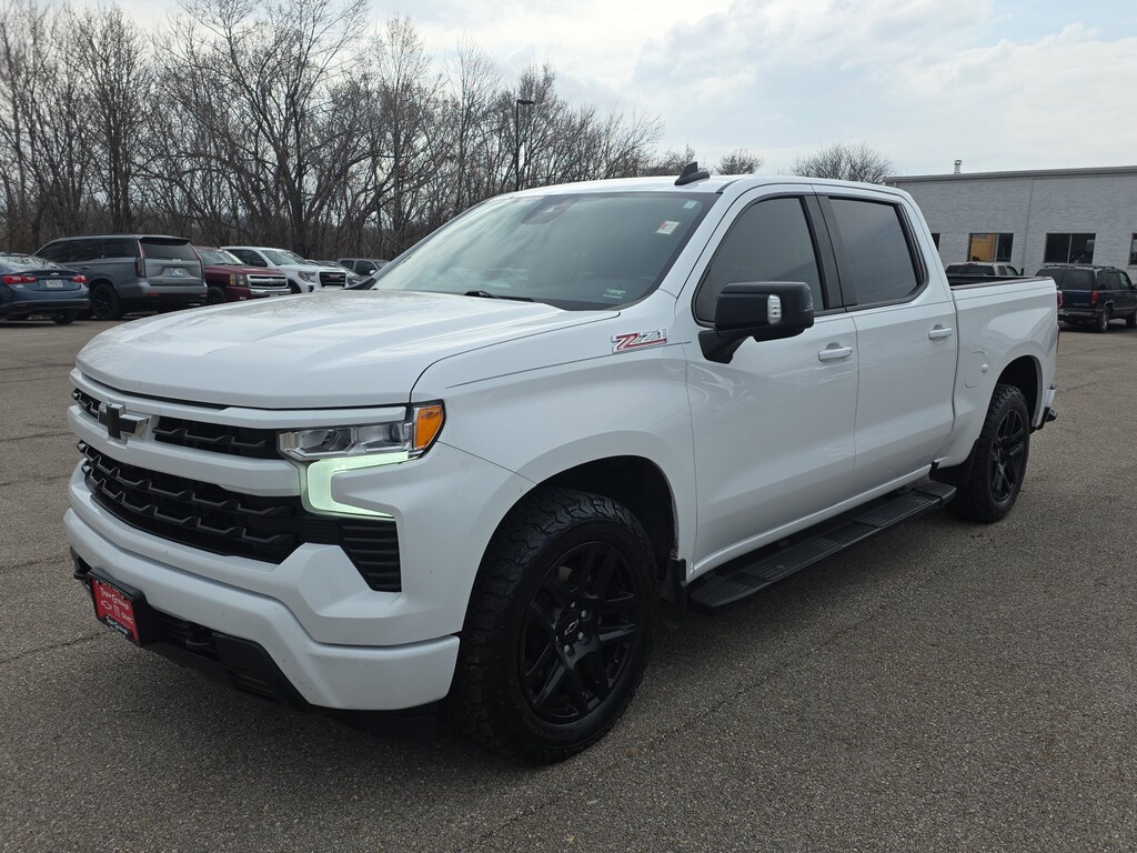 Leather, Remote Start, Bluetooth, Rear Camera, My Link Radio, Silverado 1500 RST, 4D Crew Cab, EcoTec3 5.3L V8, 10-Speed Automatic, 4WD, Summit White, Black Leather, 10-Way Power Driver Seat w/Lumbar, 12.3 Multicolor Reconfigurable Digital Display, 120-Volt Bed Mounted Power Outlet, 120-Volt Instrument Panel Power Outlet, 2 USB Data Ports, 220 Amp Alternator, 3.23 Rear Axle Ratio, 4-Wheel Disc Brakes, 40/20/40 Front Split-Bench Seat, 6 Speakers, 6-Speaker Audio System, 6 Rectangular Black Tubular Assist Steps (LPO), ABS brakes, Adaptive Cruise Control, Air Conditioning, All Star Edition Plus, All-Star Edition, All-Weather Floor Liner (LPO) (AAK), Alloy wheels, AM/FM radio: SiriusXM with 360L, Apple CarPlay/Android Auto, Auto High-beam Headlights, Auto-Locking Rear Differential, Automatic Emergency Braking, Automatic temperature control, Black Name Plates (LPO), Black Tailgate CHEVROLET Lettering (LPO), Bluetooth® For Phone, Brake assist, Bumpers: body-color, Chevrolet Connected Access Capable, Chevytec Spray-On Black Bedliner, Cloth Seat Trim, Color-Keyed Carpeting Floor Covering, Compass, Convenience Package, Convenience Package II, Dark Essentials Package (LPO), Deep-Tinted Glass, Delay-off headlights, Driver door bin, Driver vanity mirror, Dual Exhaust w/Polished Outlets, Dual front impact airbags, Dual front side impact airbags, Dual Rear USB Ports (Charge Only), Dual-Zone Automatic Climate Control, Electric Rear-Window Defogger, Electrical Steering Column Lock, Electronic Cruise Control, Electronic Stability Control, Electronic Transmission Range Selector Shifter, EZ Lift Power Lock & Release Tailgate, Floor Mounted Center Console, Following Distance Indicator, Forward Collision Alert, Front anti-roll bar, Front Bucket Seats, Front Center Armrest w/Storage, Front dual zone A/C, Front fog lights, Front Frame-Mounted Black Recovery Hooks, Front LED Fog Lamps, Front Pedestrian Braking, Front reading lights, Front Rubberized Vinyl Floor Mats, Front wheel independent suspension, Fully automatic headlights, HD Rear Vision Camera, HD Surround Vision, Heated door mirrors, Heated Driver & Front Outboard Passenger Seats, Heated front seats, Heated Power-Adjustable Outside Mirrors, Heated Steering Wheel, Heated steering wheel, Heavy-Duty Air Filter, High Capacity Suspension Package, High Gloss Black Mirror Caps, Hill Descent Control, Hitch Guidance, Hitch Guidance w/Hitch View, Illuminated entry, Inside Rear-View Mirror w/Tilt, Integrated Trailer Brake Controller, IntelliBeam Automatic High Beam On/Off, Keyless Open & Start, Lane Keep Assist w/Lane Departure Warning, Leather Package, Leather Wrapped Steering Wheel, Leather-Appointed Front Seat Trim, LED Cargo Area Lighting, Low tire pressure warning, Manual Tilt/Telescoping Steering Column, Not Equipped w/Dynamic Fuel Management, Not Equipped w/Rear Park Assist, Not Equipped w/Steering Column Lock, Occupant sensing airbag, Off-Road Suspension, OnStar & Chevrolet Connected Services Capable, Outside temperature display, Overhead airbag, Overhead console, Panic alarm, Passenger door bin, Passenger vanity mirror, Perimeter Lighting, Power door mirrors, Power driver seat, Power Front Windows w/Driver Express Up/Down, Power Front Windows w/Passenger Express Down, Power Rear Windows w/Express Down, Power Sliding Rear Window w/Rear Defogger, Power steering, Power windows, Preferred Equipment Group 1SP, Premium audio system: Chevrolet Infotainment 3 Premium, Premium Bose 7-Speaker Sound System, Protection Package, Radio data system, Radio: Chevrolet Infotainment 3 Premium System, Rear 60/40 Folding Bench Seat (Folds Up), Rear Cross Traffic Alert-Braking, Rear Park Assist, Rear Pedestrian Detection, Rear reading lights, Rear Rubberized-Vinyl Floor Mats, Rear step bumper, Rear Wheelhouse Liners, Rear window defroster, Remote keyless entry, Remote Vehicle Starter System, RST All Star Premium Package, Safety Package, Security system, SiriusX