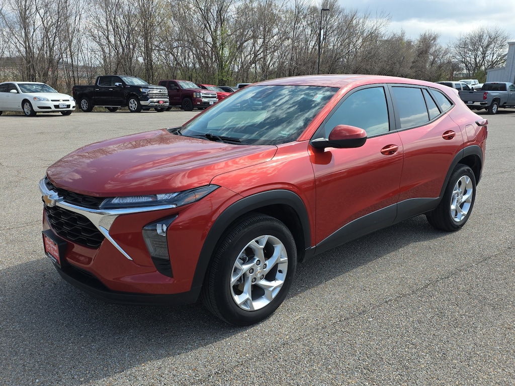 Bluetooth, Rear Camera, My Link Radio, Trax LS, 4D Sport Utility, 1.2L Ecotec Turbo DOHC DI w/VVT, 6-Speed Automatic, FWD, Cayenne Orange Metallic, Jet Black/Gray With Blue Accents Cloth, 17 Steel Wheels w/Wheel Covers, 2-Way Adjustable Front Head Restraints, 3.50 Final Drive Axle Ratio, 4 Speakers, 4-Speaker Audio System Feature, 4-Way Manual Front Passenger Seat Adjuster, 4-Wheel Disc Brakes, 6-Way Manual Driver Seat Adjuster, ABS brakes, Air Conditioning, AM/FM radio: SiriusXM, Auto High-beam Headlights, Body-Color Painted Mirror Caps, Brake assist, Bumpers: body-color, Carpeted Rear Floor Mats, Cloth Seat Trim, Compass, Delay-off headlights, Driver Confidence Package, Driver door bin, Driver vanity mirror, Dual front impact airbags, Dual front side impact airbags, Electronic Stability Control, Emergency communication system: OnStar and Chevrolet connected services capable, Exterior Parking Camera Rear, Front anti-roll bar, Front Bucket Seats, Front Center Armrest, Front reading lights, Front wheel independent suspension, Fully automatic headlights, Heated Driver & Front Passenger Seats, Heated Power-Adjustable Outside Mirrors, Illuminated entry, Lane Change Alert w/Side Blind Zone Alert, License Plate Front Mounting Package, Low tire pressure warning, LS Convenience Package, Occupant sensing airbag, Outside temperature display, Overhead airbag, Overhead console, Panic alarm, Passenger door bin, Passenger vanity mirror, Power door mirrors, Power steering, Power windows, Preferred Equipment Group 1LS, Premium audio system: Chevrolet Infotainment 3, Radio data system, Radio: Chevrolet Infotainment 3 System w/AM/FM, Rear Cross-Traffic Alert, Rear Park Assist (DISC), Rear window defroster, Rear window wiper, Remote keyless entry, Remote Start, Security system, SiriusXM, Speed control, Split folding rear seat, Spoiler, Steering wheel mounted audio controls, Tachometer, Telescoping steering wheel, Tilt steering wheel, Traction control, Trip computer, Variably intermittent wipers, Wheels: 17 Silver Painted Aluminum, Trax LS, 4D Sport Utility, 1.2L Ecotec Turbo DOHC DI w/VVT, 6-Speed Automatic, FWD, Cayenne Orange Metallic, Jet Black/Gray With Blue Accents Cloth. Cayenne Orange Metallic 2024 Chevrolet Trax LS 1.2L Ecotec Turbo DOHC DI w/VVT 6-Speed Automatic FWD 4D Sport Utility
