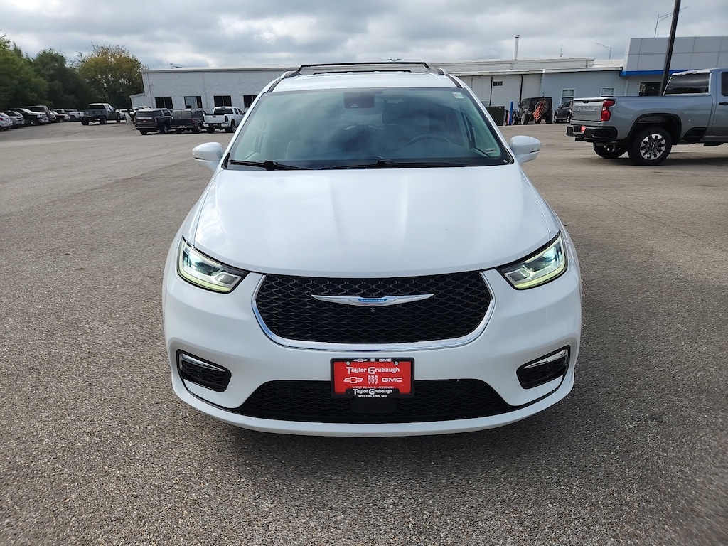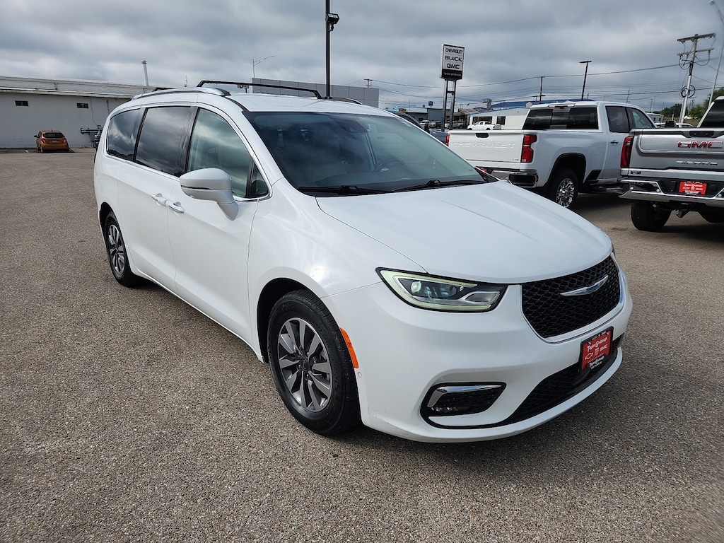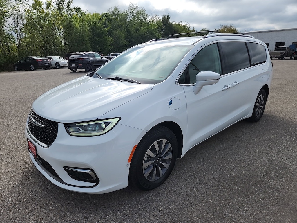 Leather, Remote Start, Bluetooth, Rear Camera, Pacifica Hybrid Touring L, 4D Passenger Van, 3.6L V6, CVT, FWD, Bright White Clearcoat, Alloy/Black Leather, 1-Year Trial (Registration Required), 10.1 Touchscreen Display, 13 Alpine Speakers, 13 Speakers, 3.59 Axle Ratio, 360 Surround View Camera System, 3rd row seats: split-bench, 3rd Row USB Charge Port, 4-Wheel Disc Brakes, 4G LTE Wi-Fi Hot Spot, 506 Watt Amplifier, ABS brakes, Air Conditioning, Alloy Seats, Alloy wheels, AM/FM radio: SiriusXM 360L, Apple CarPlay, Apple CarPlay/Android Auto, Audio memory, Auto-dimming Rear-View mirror, Automatic temperature control, Brake assist, Bumpers: body-color, Compass, Delay-off headlights, Disassociated Touchscreen Display, Driver door bin, Driver vanity mirror, Driver's Seat Mounted Armrest, Dual front impact airbags, Dual front side impact airbags, Electronic Stability Control, Emergency communication system: Uconnect Access, Exterior Parking Camera Rear, Four wheel independent suspension, Front anti-roll bar, Front Bucket Seats, Front dual zone A/C, Front fog lights, Front Passenger Auto Advance N Return, Front reading lights, Fully automatic headlights, Garage door transmitter, Global Telematics Box Module (TBM), Google Android Auto, GPS Antenna Input, GPS Navigation, HD Radio, Heated door mirrors, Heated front seats, Heated steering wheel, Heavy Duty Suspension, Illuminated entry, Instrument Panel Anodized Silver Bezel, Integrated Active Noise Cancellation, Integrated Center Stack Radio, Integrated Voice Command w/Bluetooth, Knee airbag, Leather steering wheel, Liquid Titanium Accents, Low tire pressure warning, Memory seat, Navigation System, Occupant sensing airbag, Outside temperature display, Overhead airbag, Overhead console, Panic alarm, Parallel & Perp Park Assist w/Stop, ParkSense Front/Rear Park Assist w/Stop, Passenger door bin, Passenger seat mounted armrest, Passenger vanity mirror, Perforated Leather Trim Bucket Seats, Power Adjust 8-Way Front Passenger Seat, Power door mirrors, Power driver seat, Power Liftgate, Power Passenger Lumbar Adjust, Power passenger seat, Power steering, Power windows, Premium & Safety Sphere Group (DISC), Quick Order Package 2EL, Radio data system, Radio: Uconnect 5 Nav w/10.1 Display, Rain sensing wipers, Rear air conditioning, Rear reading lights, Rear window defroster, Rear window wiper, Reclining 3rd row seat, Remote keyless entry, Roof rack, Security system, SiriusXM Guardian - Included Trial (B), SiriusXM Satellite Radio, SiriusXM w/360L, Speed control, Split folding rear seat, Spoiler, Steering wheel mounted audio controls, Tachometer, Telescoping steering wheel, Tilt steering wheel, Traction control, Trip computer, Turn signal indicator mirrors, USB Host Flip, Variably intermittent wipers, Voltmeter, Wheels: 17 x 7.0 Diamond Cut w/Painted Pockets, Pacifica Hybrid Touring L, 4D Passenger Van, 3.6L V6, CVT, FWD, Bright White Clearcoat, Alloy/Black Leather. Bright White Clearcoat 2021 Chrysler Pacifica Hybrid Touring L 3.6L V6 CVT FWD 4D Passenger Van