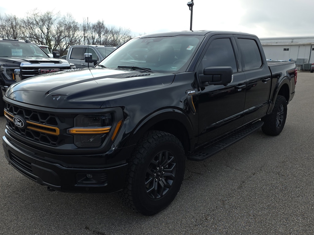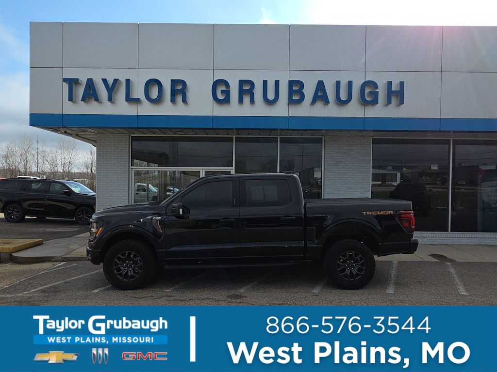 Remote Start, Bluetooth, Rear Camera, F-150 Tremor, Ford Certified, 4D SuperCrew, 5.0L V8, 10-Speed Automatic, 4WD, Agate Black Metallic, Black Cloth, 4-Wheel Disc Brakes, 8 Speakers, ABS brakes, Adjustable pedals, Air Conditioning, Alloy wheels, AM/FM radio: SiriusXM with 360L, Auto High-beam Headlights, Auto-dimming door mirrors, Auto-dimming Rear-View mirror, Automatic temperature control, Brake assist, Bumpers: body-color, Compass, Delay-off headlights, Driver door bin, Driver vanity mirror, Dual front impact airbags, Dual front side impact airbags, Electronic Locking w/3.73 Axle Ratio, Electronic Stability Control, Emergency communication system: SYNC 4 911 Assist, Equipment Group 401A Standard, Front anti-roll bar, Front Bucket Seats, Front Center Armrest, Front dual zone A/C, Front fog lights, Front reading lights, Front wheel independent suspension, Fully automatic headlights, GVWR: 7,100 lbs Payload Package, Heated door mirrors, Heated front seats, Illuminated entry, Low tire pressure warning, Navigation system: Connected Navigation, Occupant sensing airbag, Outside temperature display, Overhead airbag, Overhead console, Panic alarm, Passenger door bin, Passenger vanity mirror, Power door mirrors, Power driver seat, Power passenger seat, Power steering, Power windows, Radio data system, Radio: B&O Sound System by Bang & Olufsen, Rear reading lights, Rear step bumper, Rear window defroster, Remote keyless entry, Security system, Speed control, Split folding rear seat, Steering wheel mounted audio controls, SYNC 4 w/Enhanced Voice Recognition, Tachometer, Telescoping steering wheel, Tilt steering wheel, Traction control, Trip computer, Turn signal indicator mirrors, Unique Sport Cloth 40/Console/40 Power Front Seat, Variably intermittent wipers, Voltmeter, Wheels: 18 Alloy w/Dark Matte Finish, F-150 Tremor, 4D SuperCrew, 5.0L V8, 10-Speed Automatic, 4WD, Agate Black Metallic, Black Cloth. Certified. Agate Black Metallic 2024 Ford F-150 Tremor 5.0L V8 10-Speed Automatic 4WD 4D SuperCrew