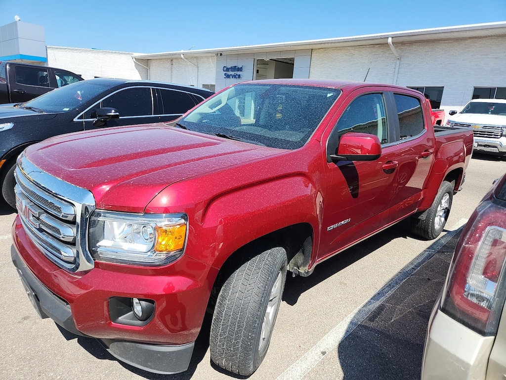 Remote Start, Bluetooth, Rear Camera, Intelink Radio, Low Miles, One Owner, Local Trade, Canyon SLE1, 4D Crew Cab, V6, 8-Speed Automatic, RWD, Red Quartz Tintcoat, Cocoa/Dune Cloth, 3.42 Rear Axle Ratio, 4-Wheel Disc Brakes, 4.10 Rear Axle Ratio, 6 Speakers, 6-Speaker Audio System Feature, ABS brakes, Air Conditioning, Alloy wheels, AM/FM radio: SiriusXM, Apple CarPlay/Android Auto, Auto-dimming Rear-View mirror, Automatic Locking Rear Differential, Bedliner w/Integral Storage Compartments (LPO), Bumpers: body-color, Cargo Tie-Down Rings (Set of 4) (LPO), Cloth Seat Trim, Compass, Delay-off headlights, Driver 6-Way Power Seat Adjuster, Driver door bin, Driver vanity mirror, Dual front impact airbags, Dual front side impact airbags, Electronic Stability Control, Exterior Parking Camera Rear, Front anti-roll bar, Front Bucket Seats, Front Center Armrest, Front fog lights, Front License Plate Kit, Front reading lights, Front wheel independent suspension, Fully automatic headlights, HD Radio, Heated door mirrors, Illuminated entry, Integrated Trailer Brake Controller, Low tire pressure warning, Manual Rear-Sliding Window, Occupant sensing airbag, Outside temperature display, Overhead airbag, Overhead console, Panic alarm, Passenger door bin, Passenger vanity mirror, Power door mirrors, Power driver seat, Power steering, Power windows, Preferred Equipment Group 2LE, Premium audio system: GMC Infotainment System, Radio data system, Radio: AM/FM w/8 Diagonal Color Touch-Screen, Rear reading lights, Rear seat center armrest, Rear step bumper, Rear window defroster, Remote keyless entry, Remote Vehicle Start System, Security system, Single-Zone Auto Climate Control Air Conditioning, SiriusXM Radio, SLE Convenience Package, Speed control, Speed-sensing steering, Steering wheel mounted audio controls, Tachometer, Telescoping steering wheel, Tilt steering wheel, Tow/Haul Mode, Traction control, Trailering Assist Guideline Hitch Guidance, Trailering Package, Trip computer, Variably intermittent wipers, Wheels: 17 x 8 Bright Silver Cast Aluminum, Canyon SLE1, 4D Crew Cab, V6, 8-Speed Automatic, RWD, Red Quartz Tintcoat, Cocoa/Dune Cloth. Red Quartz Tintcoat 2019 GMC Canyon SLE1 V6 8-Speed Automatic RWD 4D Crew Cab