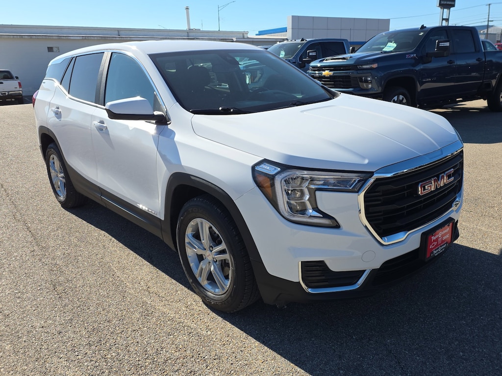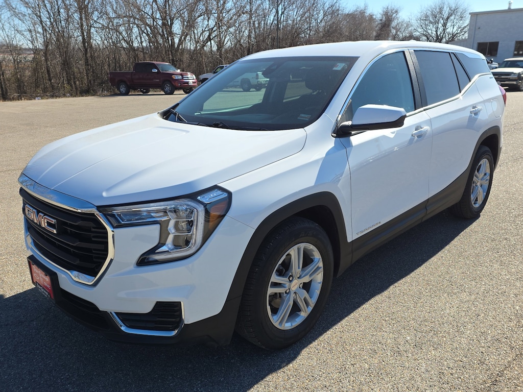 Bluetooth, Rear Camera, Intelink Radio, One Owner, Terrain SLE, 4D Sport Utility, 1.5L DOHC, 9-Speed Automatic, FWD, Summit White, 2 USB Data Ports w/Auxiliary Input Jack, 3.47 Axle Ratio, 4-Way Manual Driver's Seat, 4-Way Manual Front Passenger Seat, 4-Wheel Disc Brakes, 4.2 Multi-Color Driver Information Screen, 6 Speakers, 6-Speaker Audio System Feature, ABS brakes, Air Conditioning, Alloy wheels, AM/FM radio: SiriusXM, Auto High-beam Headlights, Auto-dimming Rear-View mirror, Automatic temperature control, Bluetooth® For Phone, Brake assist, Bumpers: body-color, Cold Air Grille Shutter, Compass, Delay-off headlights, Deleted 3 Years of OnStar & Connected Services Plan, Driver door bin, Driver vanity mirror, Dual front impact airbags, Dual front side impact airbags, Electronic Stability Control, Emergency communication system: OnStar and GMC connected services capable, Four wheel independent suspension, Front anti-roll bar, Front Bucket Seats, Front Center Armrest, Front reading lights, Fully automatic headlights, Heated door mirrors, Illuminated entry, License Plate Front Mounting Package, Low tire pressure warning, Occupant sensing airbag, Outside temperature display, Overhead airbag, Overhead console, Panic alarm, Passenger door bin, Passenger vanity mirror, Power door mirrors, Power steering, Power windows, Preferred Equipment Group 3SA, Premium Cloth Seat Trim, Radio data system, Radio: GMC Infotainment Audio System w/7 Display, Rear anti-roll bar, Rear seat center armrest, Rear window defroster, Rear window wiper, Remote keyless entry, Security system, SiriusXM Radio, Speed control, Speed-sensing steering, Split folding rear seat, Spoiler, Steering wheel mounted audio controls, Tachometer, Telescoping steering wheel, Tilt steering wheel, Traction control, Trip computer, Variably intermittent wipers, Wheels: 17 x 7 Silver Painted Aluminum, Wireless Apple CarPlay/Wireless Android Auto, Terrain SLE, 4D Sport Utility, 1.5L DOHC, 9-Speed Automatic, FWD, Summit White. Summit White 2023 GMC Terrain SLE 1.5L DOHC 9-Speed Automatic FWD 4D Sport Utility