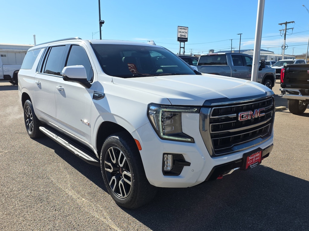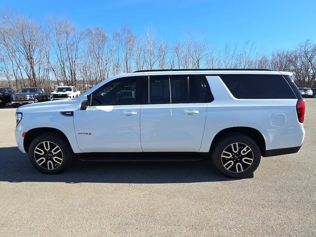 Leather, Remote Start, Bluetooth, Rear Camera, Intelink Radio, Heated Seats, Cooled Seats, Apple CarPlay, Android Auto, Yukon XL AT4, 4D Sport Utility, EcoTec3 5.3L V8, 10-Speed Automatic with Overdrive, 4WD, White, Jet Black Leather, 2 Presets For Outside Rearview Mirrors, 3 Years of GMC Connected Services, 3 Years of OnStar Safety & Security, 3.23 Rear Axle Ratio, 3rd Row 60/40 Power-Folding Split-Bench Seat, 3rd row seats: split-bench, 4-Wheel Disc Brakes, 9 Speakers, ABS brakes, Adaptive suspension, Air Conditioning, Alloy wheels, AM/FM radio: SiriusXM with 360L, AM/FM Stereo, Apple CarPlay/Android Auto, Auto High-beam Headlights, Auto-dimming door mirrors, Auto-dimming Rear-View mirror, Auto-leveling suspension, Automatic Emergency Braking, Automatic temperature control, Black Roof-Mounted Luggage Rack Side Rails, Bose 9-Speaker Stereo Audio System Feature, Brake assist, Bright Front & Rear Door Sill Plates, Bumpers: body-color, Compass, Delay-off headlights, Driver door bin, Driver vanity mirror, Dual front impact airbags, Dual front side impact airbags, Electronic Stability Control, Emergency communication system: OnStar and GMC connected services capable, Following Distance Indicator, Forward Collision Alert, Four wheel independent suspension, Front & Rear Park Assist, Front anti-roll bar, Front Bucket Seats, Front Center Armrest, Front dual zone A/C, Front fog lights, Front High-Approach Angle Fascia, Front Pedestrian Braking, Front reading lights, Fully automatic headlights, Garage door transmitter, Hands-Free Power Programmable Rear Liftgate, Heated & Ventilated Driver & Front Passenger Seats, Heated 2nd Row Outboard Position Seats, Heated door mirrors, Heated Driver & Front Passenger Seats, Heated front seats, Heated rear seats, Heated Steering Wheel, Heated steering wheel, Heavy-Duty Air Filter, Hill Descent Control, Illuminated entry, Inside Rear-View Auto-Dimming Mirror, IntelliBeam Automatic High Beam On/Off, Lane Change Alert w/Side Blind Zone Alert, Lane Keep Assist w/Lane Departure Warning, Low tire pressure warning, Magnetic Ride Control Suspension, Memory seat, Navigation System, Occupant sensing airbag, Outside Heated Power-Adjustable Mirrors, Outside temperature display, Overhead airbag, Overhead console, Panic alarm, Passenger door bin, Passenger vanity mirror, Perforated Leather Seating Surfaces, Power door mirrors, Power driver seat, Power Liftgate, Power passenger seat, Power Release 2nd Row 60/40 Split-Folding Bench Seat, Power steering, Power Tilt & Telescopic Steering Column, Power windows, Rain sensing wipers, Rear air conditioning, Rear anti-roll bar, Rear Cross Traffic Alert, Rear reading lights, Rear seat center armrest, Rear window defroster, Rear window wiper, Red Horizontal-Mounted Recovery Hooks, Remote keyless entry, Roof rack: rails only, Safety Alert Seat, Security system, SiriusXM w/360L, Speed control, Speed-sensing steering, Split folding rear seat, Spoiler, Steering wheel memory, Steering wheel mounted audio controls, Tachometer, Telescoping steering wheel, Tilt steering wheel, Traction control, Trip computer, Turn signal indicator mirrors, Universal Home Remote, Variably intermittent wipers, Ventilated front seats, Voltmeter, Wheels: 20 x 9 6-Spoke Machined Aluminum, Wireless Charging, Yukon XL AT4, 4D Sport Utility, EcoTec3 5.3L V8, 10-Speed Automatic with Overdrive, 4WD, White, Jet Black Leather. White 2023 GMC Yukon XL AT4 EcoTec3 5.3L V8 10-Speed Automatic with Overdrive 4WD 4D Sport Utility