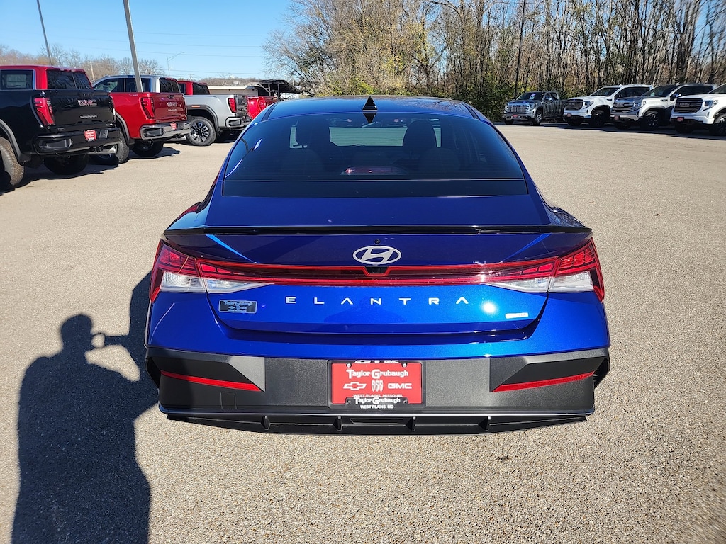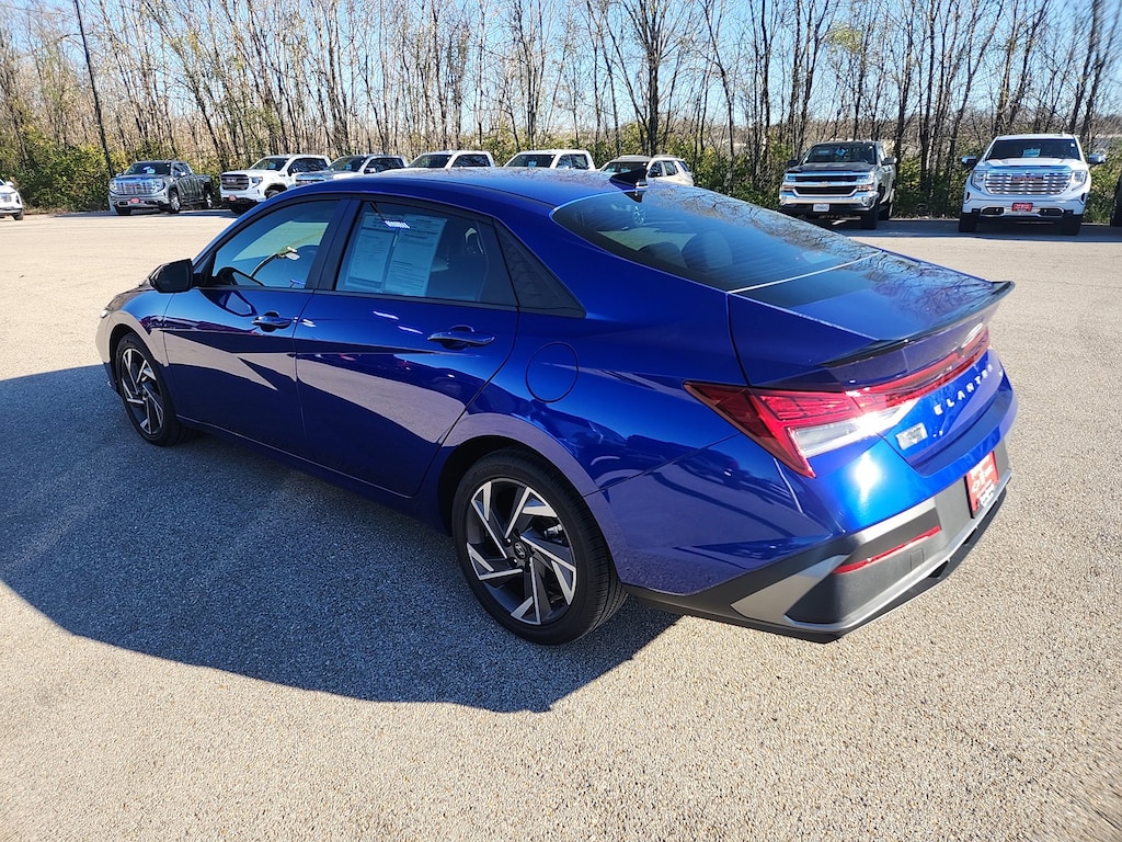 Remote Start, Bluetooth, Rear Camera, Elantra Hybrid SEL Sport, 4D Sedan, I4, 6-Speed Dual Clutch, FWD, Intense Blue, Black Cloth, 17 x 7.0J Alloy Wheels, 4-Wheel Disc Brakes, 6 Speakers, ABS brakes, Air Conditioning, Alloy wheels, AM/FM radio: SiriusXM, Apple CarPlay & Android Auto, Auto High-beam Headlights, Automatic temperature control, Brake assist, Bumpers: body-color, Cargo Block, Cargo Net, Cargo Package, Carpeted Floor Mats, Delay-off headlights, Driver door bin, Driver vanity mirror, Dual front impact airbags, Dual front side impact airbags, Electronic Stability Control, Emergency communication system: Bluelink+, Exterior Parking Camera Rear, Front anti-roll bar, Front Bucket Seats, Front Center Armrest, Front dual zone A/C, Front reading lights, Front wheel independent suspension, Fully automatic headlights, Heated door mirrors, Illuminated entry, Leather Shift Knob, Leather steering wheel, Low tire pressure warning, Navigation System, Occupant sensing airbag, Option Group 01, Outside temperature display, Overhead airbag, Overhead console, Panic alarm, Passenger door bin, Passenger vanity mirror, Power door mirrors, Power steering, Power windows, Premium Cloth Seat Trim, Radio: AM/FM/HD/SiriusXM Display Audio, Rear side impact airbag, Rear window defroster, Remote keyless entry, Reversible Cargo Tray, Security system, Speed control, Speed-sensing steering, Spoiler, Steering wheel mounted audio controls, Tachometer, Telescoping steering wheel, Tilt steering wheel, Traction control, Trip computer, Variably intermittent wipers, Wheel Locks, Elantra Hybrid SEL Sport, 4D Sedan, I4, 6-Speed Dual Clutch, FWD, Intense Blue, Black Cloth. Intense Blue 2025 Hyundai Elantra Hybrid SEL Sport I4 6-Speed Dual Clutch FWD 4D Sedan