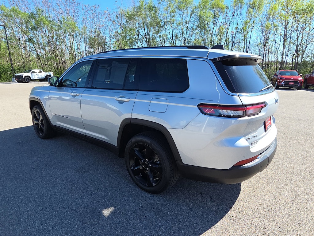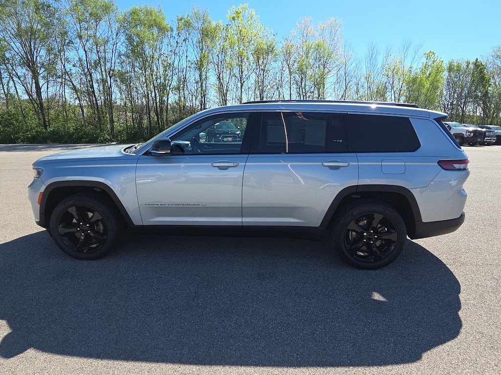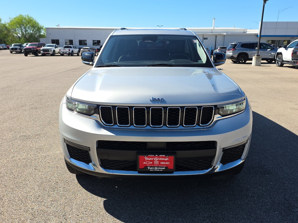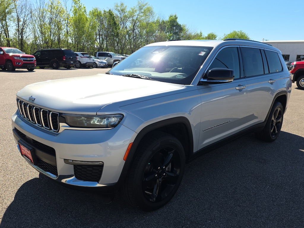 Leather, Remote Start, Bluetooth, Rear Camera, Local Trade, Grand Cherokee L Limited, 4D Sport Utility, 3.6L V6 24V VVT, 8-Speed Automatic, 4WD, Silver Zynith, Global Black Leather, 10.1 Touchscreen Display, 3.45 Rear Axle Ratio, 3rd row seats: split-bench, 4-Wheel Disc Brakes, 506 Watt Amplifier, 6 Speakers, 9 Amplified Speakers w/Subwoofer, ABS brakes, Air Conditioning, Alloy wheels, AM/FM radio: SiriusXM w/360L, Anti-whiplash front head restraints, Apple CarPlay, Apple CarPlay/Android Auto, Audio memory, Auto High-beam Headlights, Automatic temperature control, Brake assist, Bridgestone Brand Tires, Bumpers: body-color, Capri Leather Seats, Compass, Connected Travel & Traffic Services, Connectivity - US/Canada, Delay-off headlights, Disassociated Touchscreen Display, Driver door bin, Driver vanity mirror, Dual front impact airbags, Dual front side impact airbags, Dual-Pane Panoramic Sunroof, Electronic Stability Control, Emergency communication system, Four wheel independent suspension, Front anti-roll bar, Front Bucket Seats, Front Center Armrest w/Storage, Front dual zone A/C, Front fog lights, Front reading lights, Fully automatic headlights, Garage door transmitter, Google Android Auto, GPS Antenna Input, GPS Navigation, HD Radio, Heated door mirrors, Heated front seats, Heated rear seats, Heated steering wheel, Illuminated entry, Integrated Center Stack Radio, Integrated Voice Command w/Bluetooth, Interior Rear Facing Camera, Knee airbag, Leather steering wheel, Low tire pressure warning, Manual Fold Seatbacks, Memory seat, Normal Duty Suspension, Occupant sensing airbag, Outside temperature display, Overhead airbag, Overhead console, Panic alarm, ParkView Rear Back-Up Camera, Passenger door bin, Passenger vanity mirror, Power door mirrors, Power driver seat, Power Liftgate, Power passenger seat, Power steering, Power windows, Quick Order Package 22E, Radio data system, Radio: Uconnect 5 Nav w/10.1 Display, Radio: Uconnect 5 w/8.4 Display, Rear air conditioning, Rear anti-roll bar, Rear reading lights, Rear window defroster, Rear window wiper, Reclining 3rd row seat, Remote keyless entry, Roof rack: rails only, Security system, SiriusXM Satellite Radio, SiriusXM w/360L, Speed control, Speed-Sensitive Wipers, Split folding rear seat, Spoiler, Steering wheel mounted audio controls, Tachometer, Telescoping steering wheel, Tilt steering wheel, Traction control, Trip computer, Turn signal indicator mirrors, USB Host Flip, Variably intermittent wipers, Voltmeter, Wheels: 18 x 8.0 Fully Painted Aluminum 2, Wheels: 20 x 8.5 Polished/Painted Aluminum (DISC), Grand Cherokee L Limited, 4D Sport Utility, 3.6L V6 24V VVT, 8-Speed Automatic, 4WD, Silver Zynith, Global Black Leather. Silver Zynith 2021 Jeep Grand Cherokee L Limited 3.6L V6 24V VVT 8-Speed Automatic 4WD 4D Sport Utility