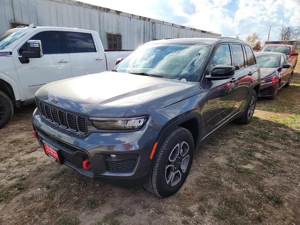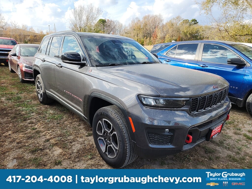 Leather, Remote Start, Bluetooth, Rear Camera, One Owner, Grand Cherokee Trailhawk, 4D Sport Utility, 3.6L V6 24V VVT, 8-Speed Automatic, 4WD, Baltic Gray Metallic Clearcoat, Global Black Leather, 10 Speakers, 3.45 Rear Axle Ratio, 4-Wheel Disc Brakes, 4G LTE Wi-Fi Hotspot, ABS brakes, Adaptive suspension, Air Conditioning, Alloy wheels, AM/FM radio: SiriusXM with 360L, Anti-whiplash front head restraints, Apple CarPlay, Audio memory, Auto High-beam Headlights, Auto-dimming door mirrors, Auto-dimming Rear-View mirror, Auto-leveling suspension, Automatic temperature control, Brake assist, Bumpers: body-color, Capri Leather/Suede Seats, Compass, Connected Travel & Traffic Services, Connectivity - US/Canada, Delay-off headlights, Disassociated Touchscreen Display, Driver door bin, Driver vanity mirror, Dual front impact airbags, Dual front side impact airbags, Electronic Stability Control, Emergency communication system, For Details, Visit DriveUconnect.com, For More Info, Call 800-643-2112, Four wheel independent suspension, Front anti-roll bar, Front Bucket Seats, Front Center Armrest w/Storage, Front dual zone A/C, Front fog lights, Front reading lights, Fully automatic headlights, Garage door transmitter, Global Telematics Box Module (TBM), Google Android Auto, GPS Antenna Input, GPS Navigation, HD Radio, Heated door mirrors, Heated front seats, Heated rear seats, Heated steering wheel, Illuminated entry, Integrated Center Stack Radio, Integrated Voice Command w/Bluetooth, Knee airbag, Leather Shift Knob, Leather steering wheel, Low tire pressure warning, Memory seat, Navigation System, Normal Duty Suspension, Occupant sensing airbag, Outside temperature display, Overhead airbag, Overhead console, Panic alarm, Passenger door bin, Passenger vanity mirror, Power door mirrors, Power driver seat, Power Liftgate, Power passenger seat, Power steering, Power windows, Quick Order Package 22J, Radio data system, Radio: Uconnect 5 Nav w/8.4 Display, Rear anti-roll bar, Rear reading lights, Rear seat center armrest, Rear window defroster, Rear window wiper, Remote keyless entry, Roof rack: rails only, Security system, SiriusXM Radio Service, SiriusXM Satellite Radio, SiriusXM w/360L, Speed control, Speed-Sensitive Wipers, Split folding rear seat, Spoiler, Steering wheel mounted audio controls, Tachometer, Telescoping steering wheel, Tilt steering wheel, Traction control, Trip computer, Turn signal indicator mirrors, USB Host Flip, Variably intermittent wipers, Ventilated front seats, Voltmeter, Wheels: 18 x 8 Machined Face/Painted Aluminum, Grand Cherokee Trailhawk, 4D Sport Utility, 3.6L V6 24V VVT, 8-Speed Automatic, 4WD, Baltic Gray Metallic Clearcoat, Global Black Leather. Baltic Gray Metallic Clearcoat 2022 Jeep Grand Cherokee Trailhawk 3.6L V6 24V VVT 8-Speed Automatic 4WD 4D Sport UtilityRecent Arrival! 19/26 City/Highway MPGView our entire inventory at https://www.taylorgrubaughchevy.com/ and be sure to call 417-256-4176 to schedule your test drive.