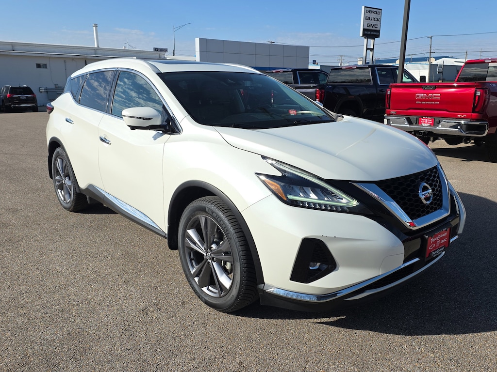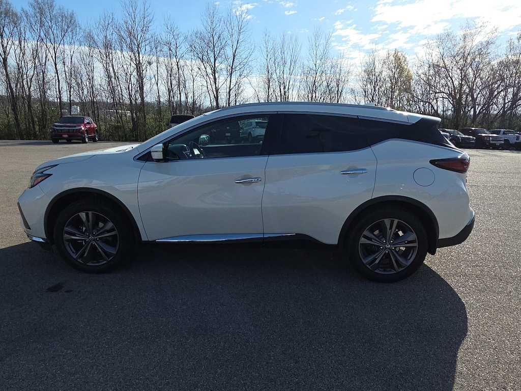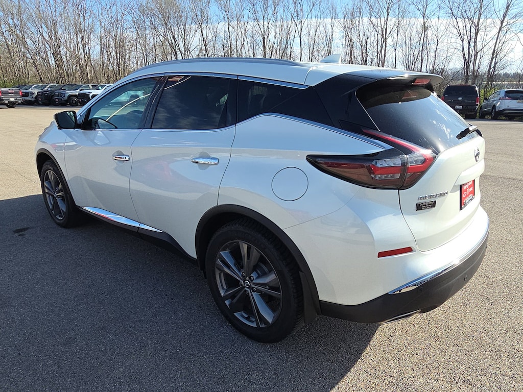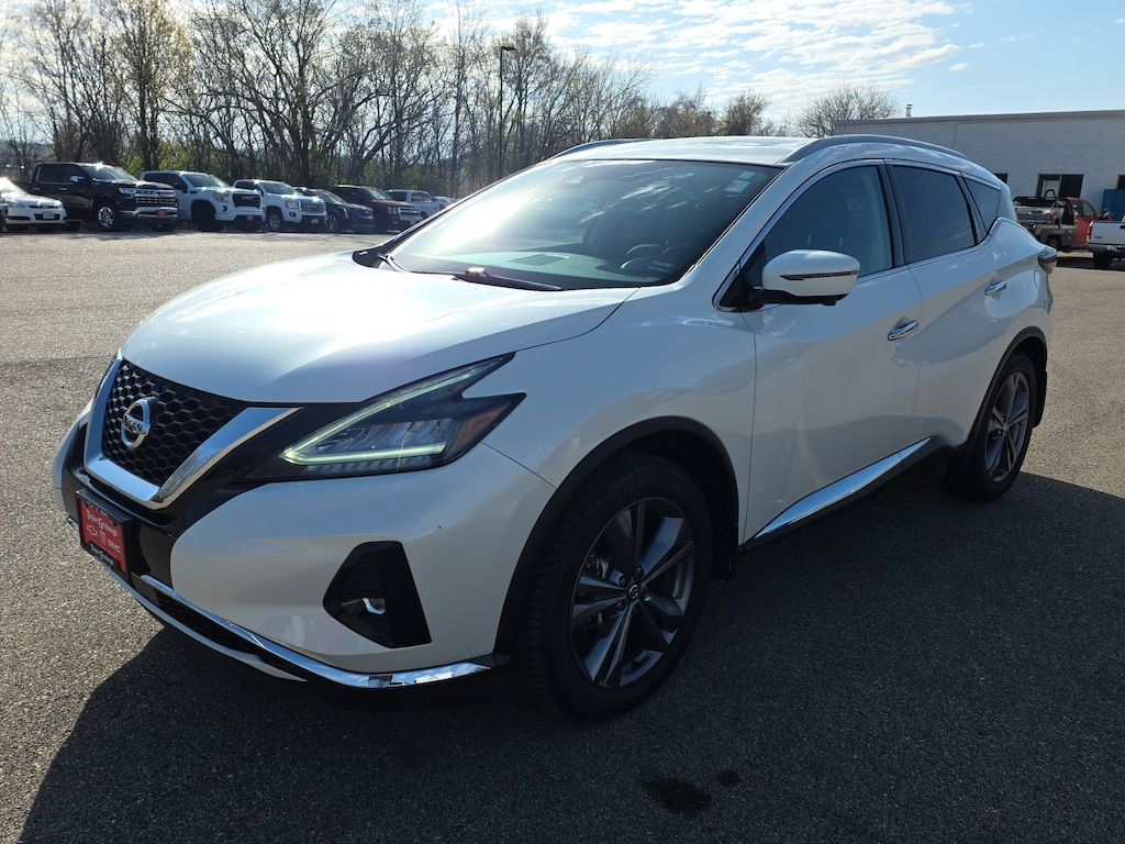 Leather, Remote Start, Bluetooth, Rear Camera, Murano Platinum, 4D Sport Utility, 3.5L V6 DOHC 24V, CVT with Xtronic, AWD, White, Cashmere Leather, 11 Speakers, 4-Wheel Disc Brakes, 4.667 Axle Ratio, ABS brakes, Air Conditioning, Alloy wheels, AM/FM radio: SiriusXM, AM/FM/CD/MP3/WMA Audio System, Auto High-beam Headlights, Auto tilt-away steering wheel, Auto-dimming Rear-View mirror, Automatic temperature control, Blind Spot Warning, Brake assist, Bumpers: body-color, CD player, Child-Seat-Sensing Airbag, Delay-off headlights, Driver door bin, Driver vanity mirror, Dual front impact airbags, Dual front side impact airbags, Electronic Stability Control, Emergency communication system: NissanConnect Services (first 6 months included), Exterior Parking Camera Rear, Four wheel independent suspension, Front anti-roll bar, Front Bucket Seats, Front Center Armrest, Front dual zone A/C, Front fog lights, Front reading lights, Fully automatic headlights, Garage door transmitter: HomeLink, Heated & Ventilated Front Bucket Seats, Heated door mirrors, Heated front seats, Heated rear seats, Heated steering wheel, Illuminated entry, Knee airbag, Low tire pressure warning, Memory seat, Navigation system: NissanConnect Navigation, NissanConnect featuring Apple CarPlay and Android Auto, NissanConnect Services Powered By SiriusXM, Occupant sensing airbag, Outside temperature display, Overhead airbag, Overhead console, Panic alarm, Passenger door bin, Passenger vanity mirror, Power door mirrors, Power driver seat, Power Liftgate, Power moonroof, Power passenger seat, Power steering, Power windows, Radio data system, Rear anti-roll bar, Rear reading lights, Rear seat center armrest, Rear side impact airbag, Rear window defroster, Rear window wiper, Remote keyless entry, Roof rack: rails only, Security system, Semi-Aniline Leather-Appointed Seat Trim, Speed control, Speed-sensing steering, Speed-Sensitive Wipers, Split folding rear seat, Spoiler, Steering wheel memory, Steering wheel mounted audio controls, Tachometer, Telescoping steering wheel, Tilt steering wheel, Traction control, Trip computer, Turn signal indicator mirrors, Variably intermittent wipers, Ventilated front seats, Wheels: 20 Dark Hyper Silver, Murano Platinum, 4D Sport Utility, 3.5L V6 DOHC 24V, CVT with Xtronic, AWD, White, Cashmere Leather. White 2021 Nissan Murano Platinum 3.5L V6 DOHC 24V CVT with Xtronic AWD 4D Sport Utility