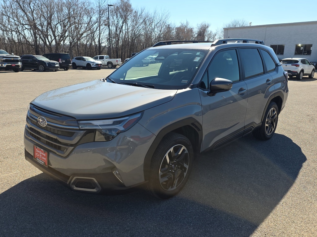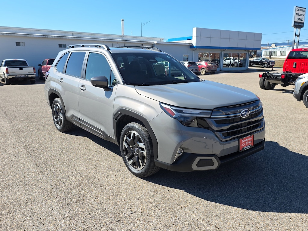 Leather, Remote Start, Bluetooth, Rear Camera, Low Miles, One Owner, Local Trade, Forester Limited, Subaru Certified, 4D Sport Utility, 2.5L 4-Cylinder DOHC 16V, Lineartronic CVT, AWD, River Rock Pearl, Black Leather, 4-Wheel Disc Brakes, 6 Speakers, ABS brakes, Air Conditioning, All-Weather Floor Liners, Alloy wheels, AM/FM radio: SiriusXM with 360L, Anti-whiplash front head restraints, Auto High-beam Headlights, Auto-Dimming Exterior Mirror w/Approach Light, Auto-Dimming Mirror w/Compass & HomeLink, Automatic temperature control, Brake assist, Bumpers: body-color, Center Console Tray, Driver door bin, Driver vanity mirror, Dual front impact airbags, Dual front side impact airbags, Electronic Stability Control, Emergency communication system: MySubaru Safety (3-year free trial), Exterior Parking Camera Rear, Four wheel independent suspension, Front anti-roll bar, Front Bucket Seats, Front Center Armrest, Front dual zone A/C, Front fog lights, Front reading lights, Fully automatic headlights, harman/kardon Audio & Navigation & RAB, Heated door mirrors, Heated Front Bucket Seats, Heated front seats, Heated steering wheel, Illuminated entry, Knee airbag, Leather steering wheel, LED Upgrade, Low tire pressure warning, Occupant sensing airbag, Outside temperature display, Overhead airbag, Overhead console, Panic alarm, Passenger door bin, Passenger vanity mirror, Perforated Leather-Trimmed Upholstery, Power door mirrors, Power driver seat, Power Liftgate, Power moonroof: Panoramic, Power passenger seat, Power steering, Power windows, Radio data system, Radio: Subaru 11.6 Multimedia Navigation System, Radio: Subaru 11.6 Multimedia Plus System, Rear anti-roll bar, Rear Bumper Cover, Rear seat center armrest, Rear window defroster, Rear window wiper, Remote keyless entry, Reverse Automatic Braking (RAB) System, Security system, Speed control, Speed-sensing steering, Split folding rear seat, Spoiler, Steering wheel mounted audio controls, Tachometer, Telescoping steering wheel, Tilt steering wheel, Traction control, Trip computer, Turn signal indicator mirrors, Variably intermittent wipers, Wheels: 18 x 7.0 J Dark Metallic Aluminum-Alloy, Forester Limited, 4D Sport Utility, 2.5L 4-Cylinder DOHC 16V, Lineartronic CVT, AWD, River Rock Pearl, Black Leather. Certified. River Rock Pearl 2025 Subaru Forester Limited 2.5L 4-Cylinder DOHC 16V Lineartronic CVT AWD 4D Sport Utility