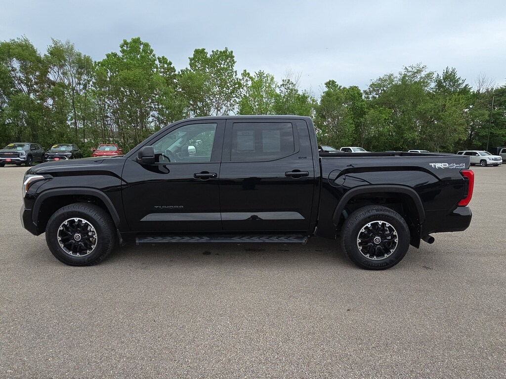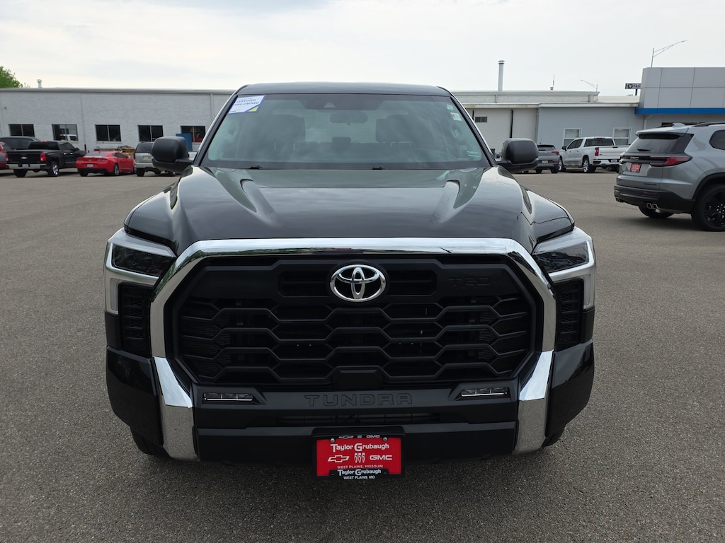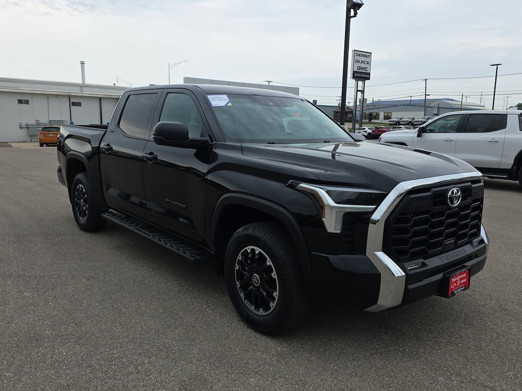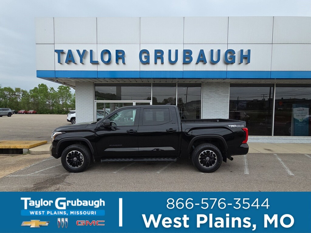 Remote Start, Bluetooth, Rear Camera, Tundra SR5, 4D CrewMax, 3.4L V6, 10-Speed Automatic, 4WD, Midnight Black Metallic, Black Cloth, 18 Alloy Wheels, 3.31 Axle Ratio, 4-Way Adjustable Front Bucket Seats, 4-Wheel Disc Brakes, 9 Speakers, ABS brakes, Air Conditioning, All Weather Floor Liners (TMS), Alloy wheels, AM/FM radio: SiriusXM, Apple CarPlay/Android Auto, Auto High-beam Headlights, Automatic temperature control, Bedside TRD Off Road Decal, Black Grille w/Chrome Surround, Brake assist, Bumpers: body-color, Delay-off headlights, Driver door bin, Driver vanity mirror, Dual front impact airbags, Dual front side impact airbags, Electronic Stability Control, Emergency communication system: Safety Connect (10-year trial), Emergency Kit (TMS), Exterior Parking Camera Rear, Fabric Seat Trim (FB), Front & Rear Mud Guards, Front anti-roll bar, Front Bucket Seats, Front Center Armrest, Front fog lights, Front reading lights, Front Spoiler Delete, Front wheel independent suspension, Fully automatic headlights, Heated door mirrors, Heated Leather Steering Wheel, Illuminated entry, Knee airbag, Low tire pressure warning, Occupant sensing airbag, Offroad Front Skid Plate, Outside temperature display, Overhead airbag, Overhead console, Panic alarm, Passenger door bin, Passenger vanity mirror, Power door mirrors, Power steering, Power windows, Radio data system, Radio: Audio Multimedia System, Rear reading lights, Rear step bumper, Rear window defroster, Remote keyless entry, Safety Connect, Security system, Speed control, Speed-sensing steering, Split folding rear seat, Steering wheel mounted audio controls, Tachometer, Telescoping steering wheel, Tilt steering wheel, Traction control, TRD Off-Road Package, TRD Off-Road Suspension w/Bilstein Shocks, Trip computer, Variably intermittent wipers, Voltmeter, Tundra SR5, 4D CrewMax, 3.4L V6, 10-Speed Automatic, 4WD, Midnight Black Metallic, Black Cloth. Midnight Black Metallic 2023 Toyota Tundra SR5 3.4L V6 10-Speed Automatic 4WD 4D CrewMax
